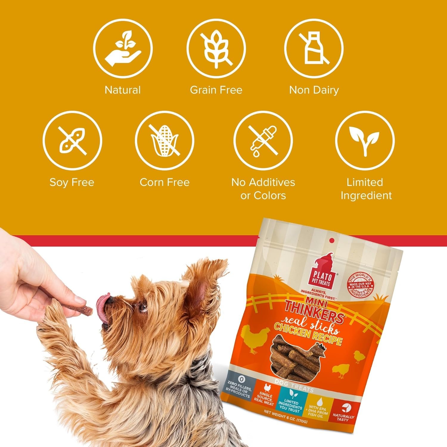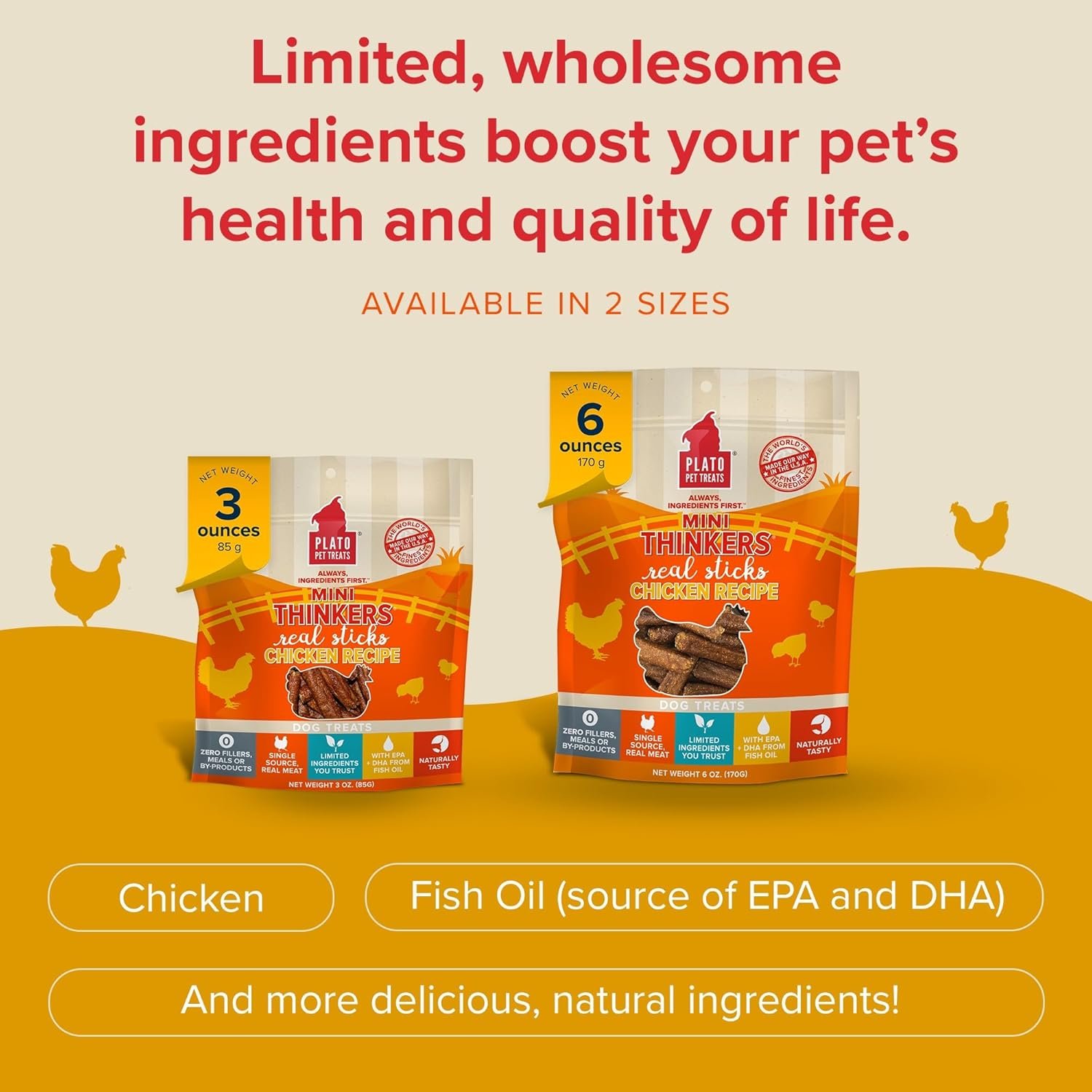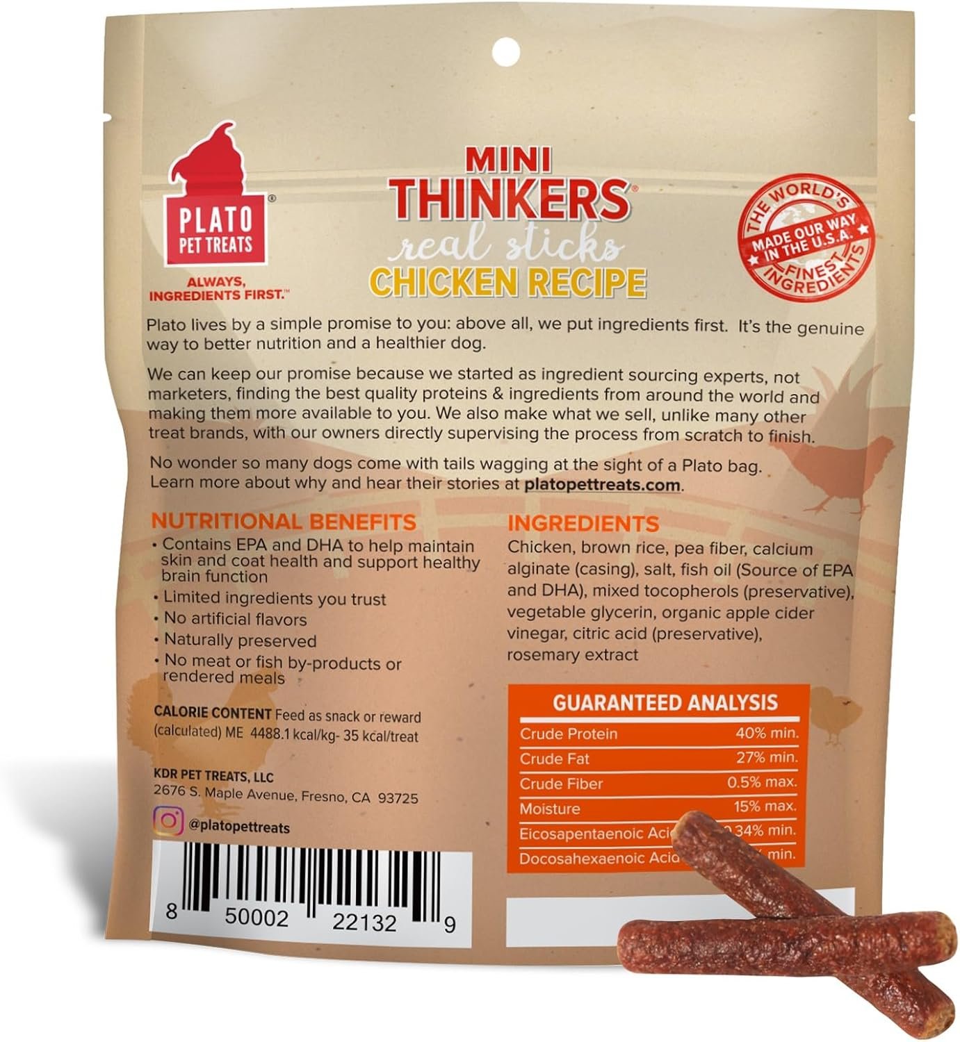 PLATO Mini Thinkers Sticks – Natural Dog Treats – Real Meat – Air Dried – Made in the USA, Chicken Flavor, 3 ounces