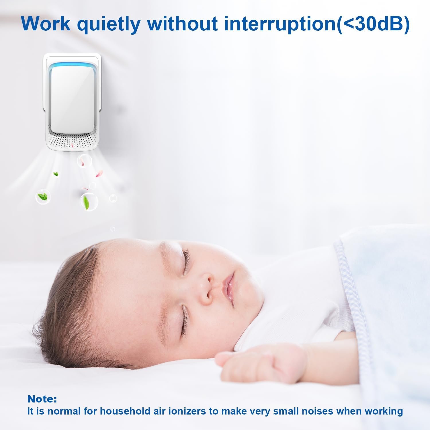 【4 Pack Air Ionizers for Home】:The portable plug in ionizer air purifier through negative ion technology. It can make you feel the freshness of the forest, enjoy a relaxing breath of fresh air with peace of mind.