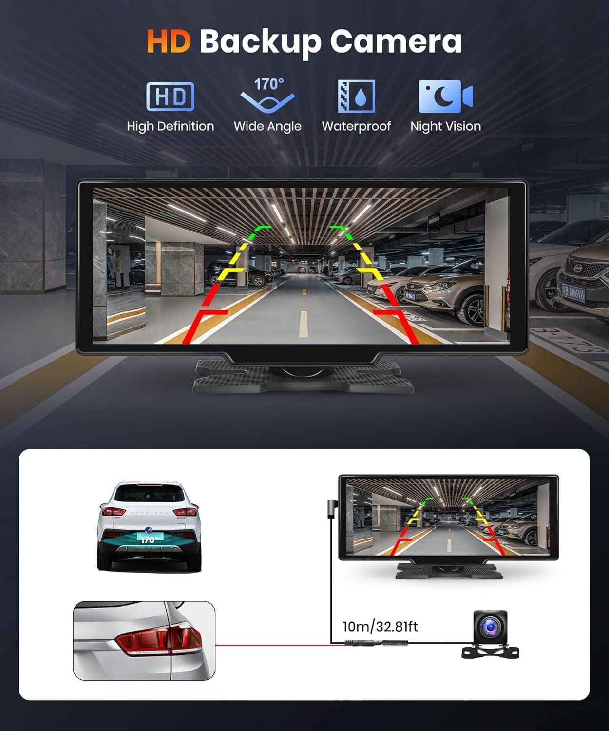 HD Backup Camera & MirrorLink: Carplay screen is equipped with a AHD rear view camera, 1280*720, IP69 waterproof, 170-degree wide angle, 15M/49ft extra-long cable, suitable for all vehicles. When reversing, the rearview image will be automatically displayed on the screen.Compatible with Android and iOS smartphones, allowing you to mirror your phone’s screen on the radio’s display, enabling access to your phone’s apps, music, videos, and more through the radio