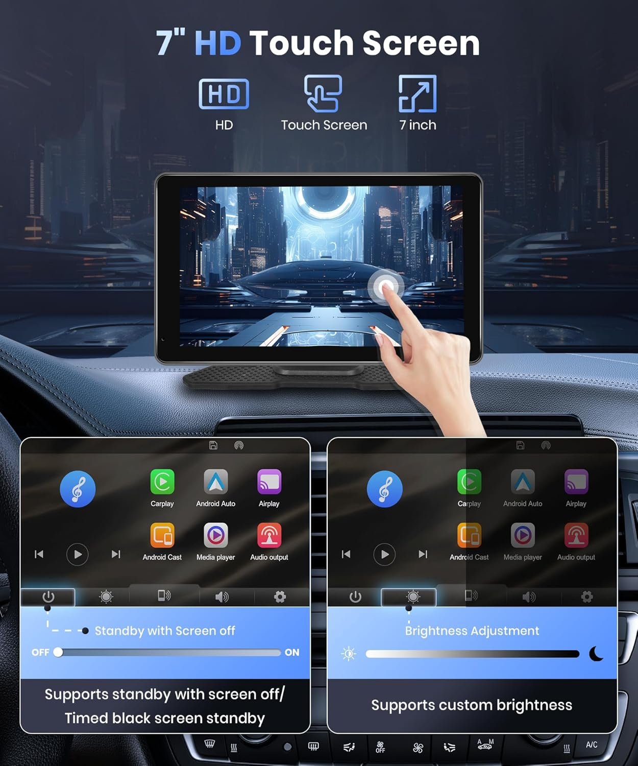 4.Bluetooth Car Screen and Map Navigation: The android auto screen enables hands-free Bluetooth calling and music streaming while also providing access to maps, directions and traffic information from your phone through the 7-inch carplay screen for safer and more convenient navigation on the go