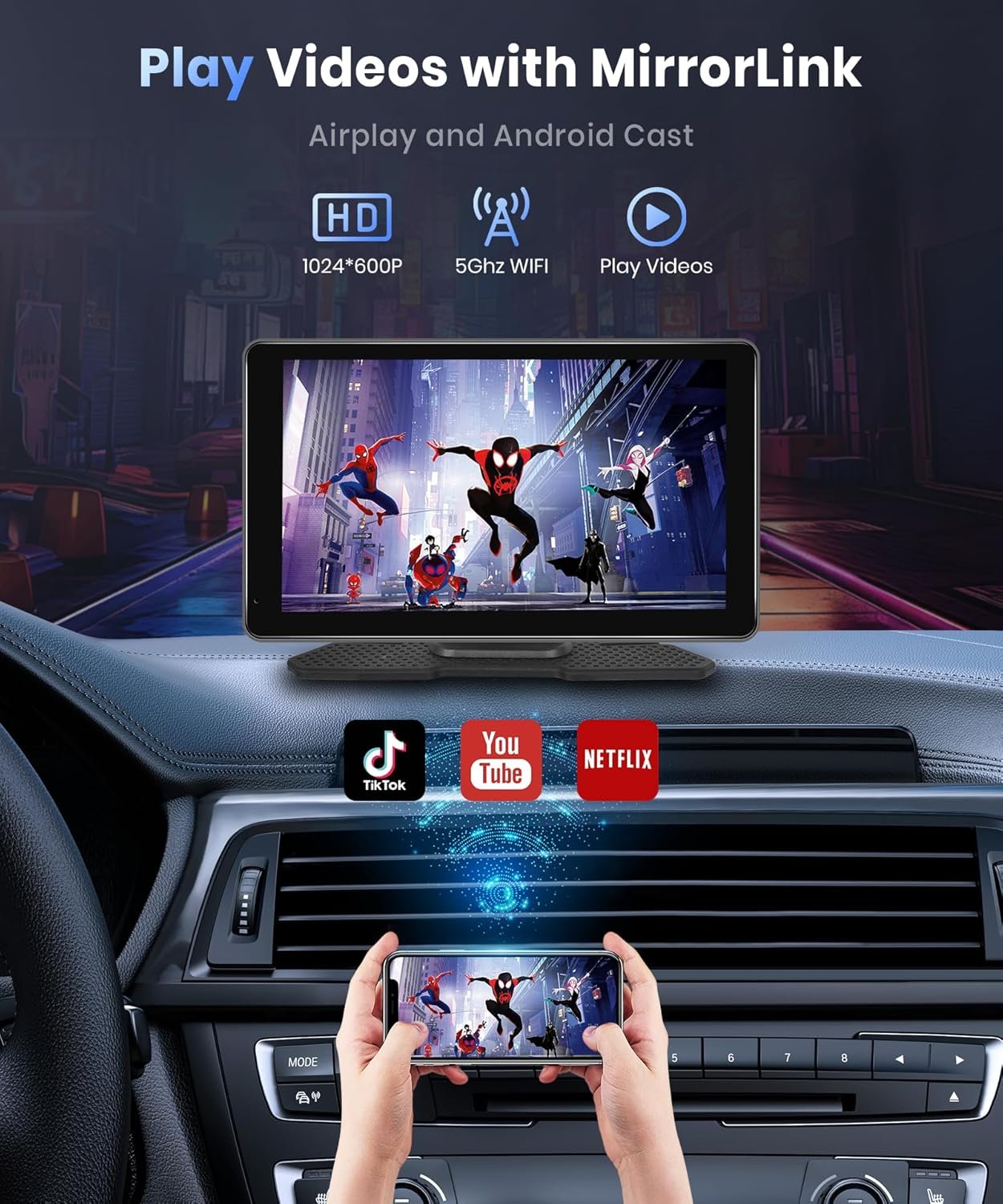3.Easy Installation Fit All Different Car: Plug and play directly with dashboard via connect cigarette lighter.You don’t need to disassemble your car’s console, keep your car original radio, perfect coexistence. The apple car play screen is suitable for most motor vehicles, such as cars, trucks, vans, buses, pickups,sedans, RVs, campers, and more