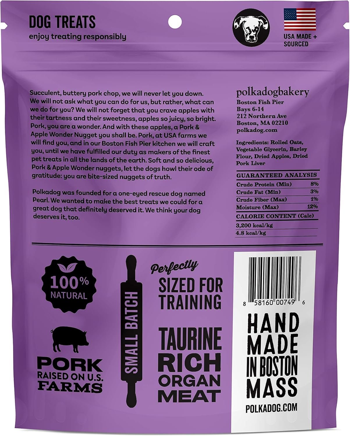 ALL-NATURAL INGREDIENT: Our Pork & Apple Wonder Nuggets are made from premium quality pork sourced from U.S farms. The slow dehydration process intensifies the meaty flavor that dogs crave and serves as a great as everyday dog snack