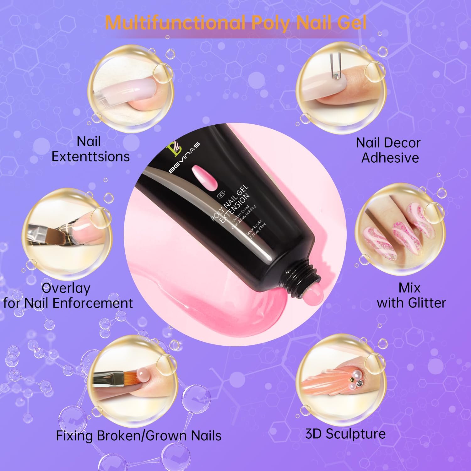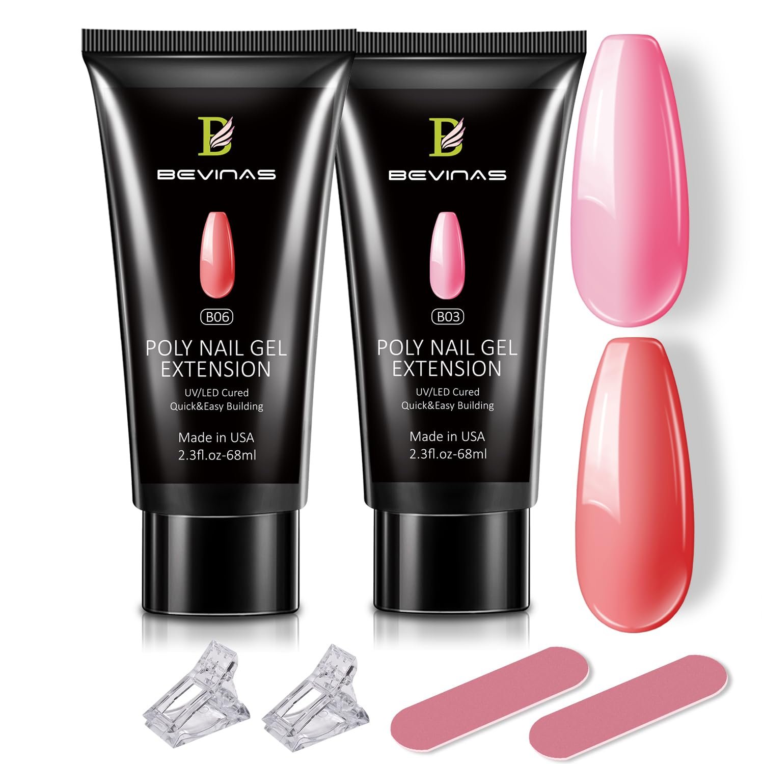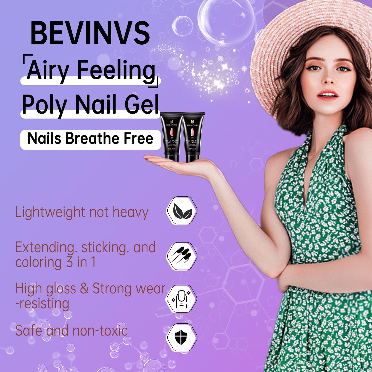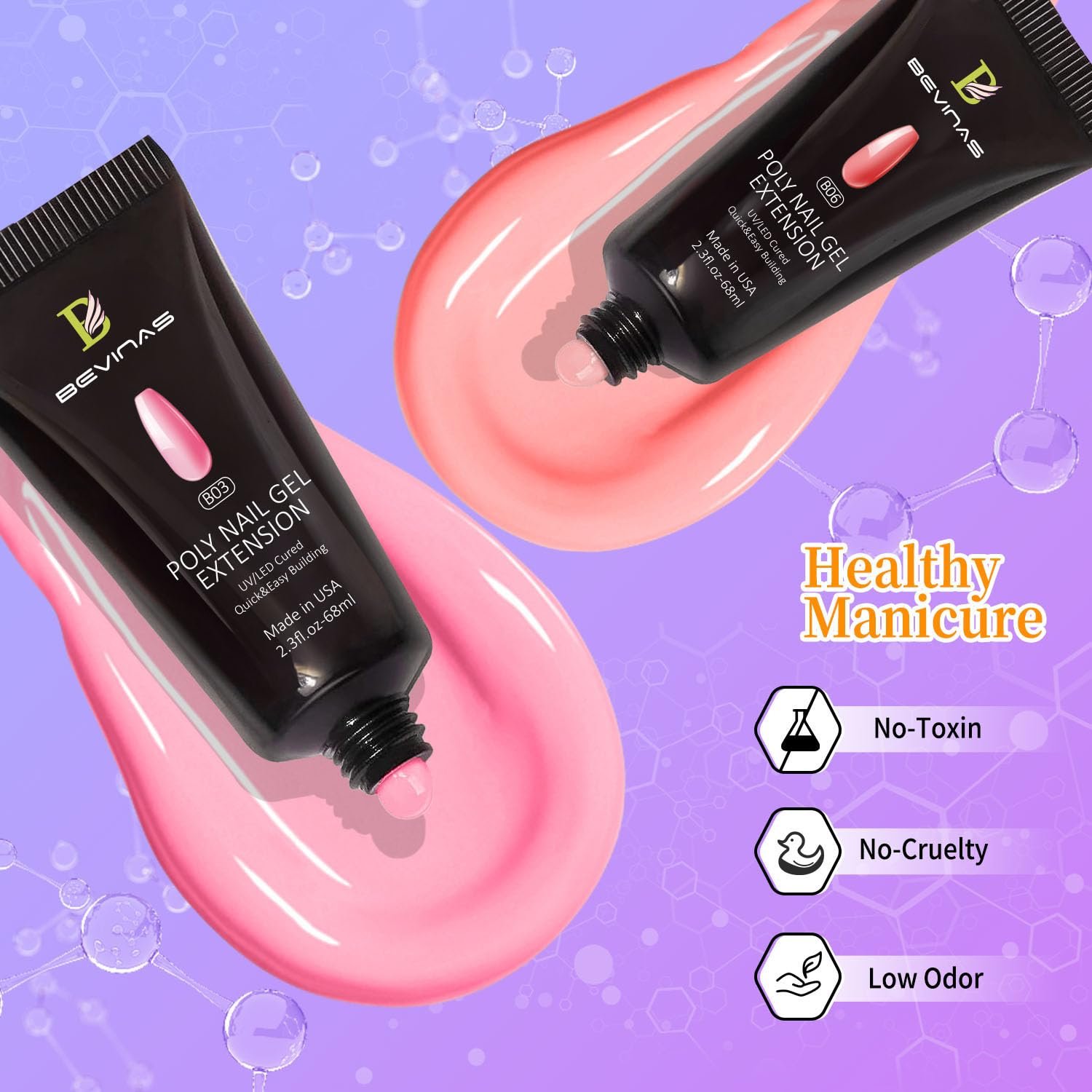 đăSOFT NATURAL POLY GEL NAIL COLORSăBEVINAS poly gel nail kit is for both starters and professional, 2.3fl.oz.e.69ml each tube, enough for your DIY nail salon at home. Soft & natural nail style.