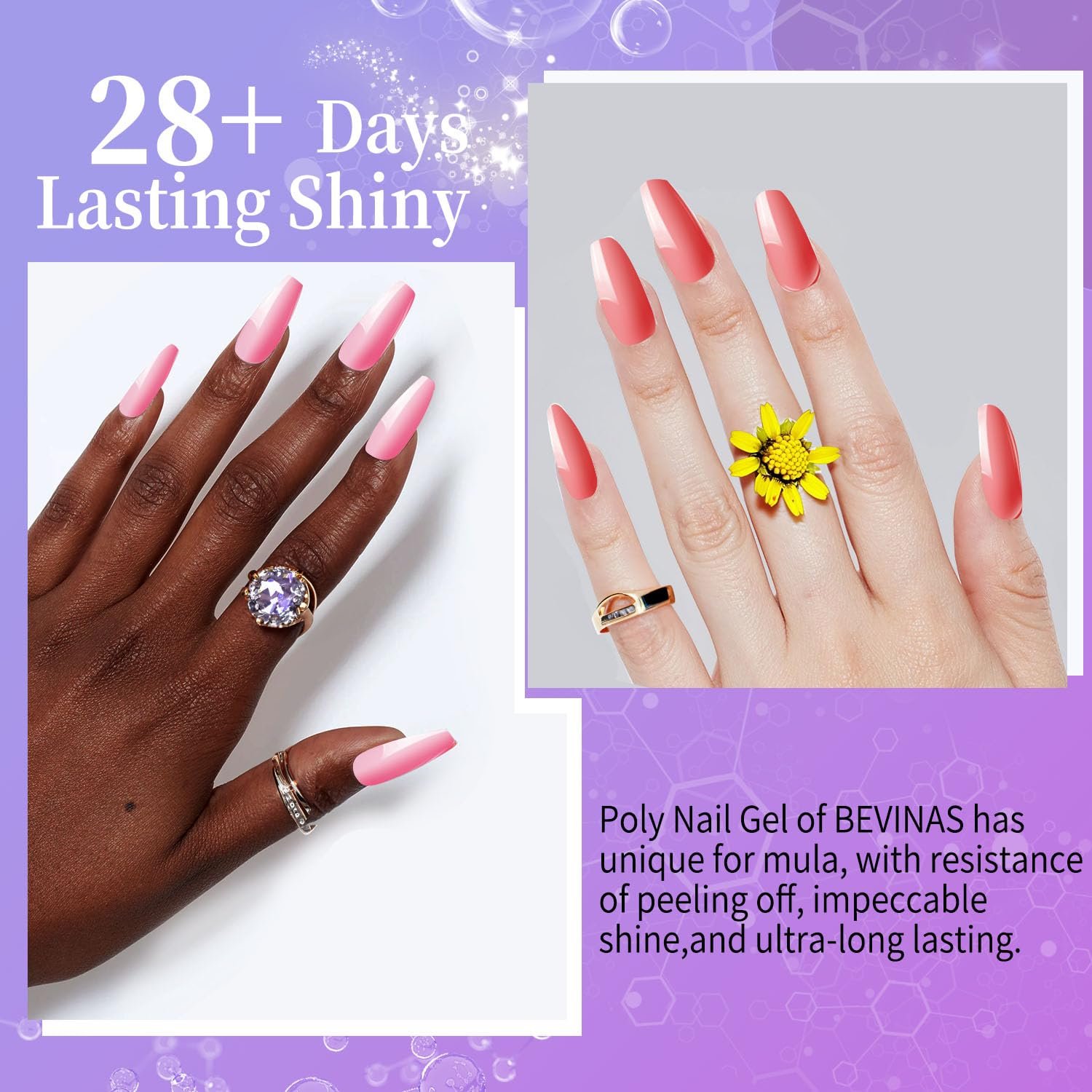 đăGOOD QUALITY POLY NAIL GELăBEVINAS poly gel is professional for nail extension. Made with long-lasting ingredients, it’s the perfect solution for durable nail extensions. This poly gel nail extension gel featuring innovative 12 Toxic-Free ingredients and botanical extracts formula, to give nails high endurance & long-lasting strength, which is cruelty-free, low odor, safe on natural nails.