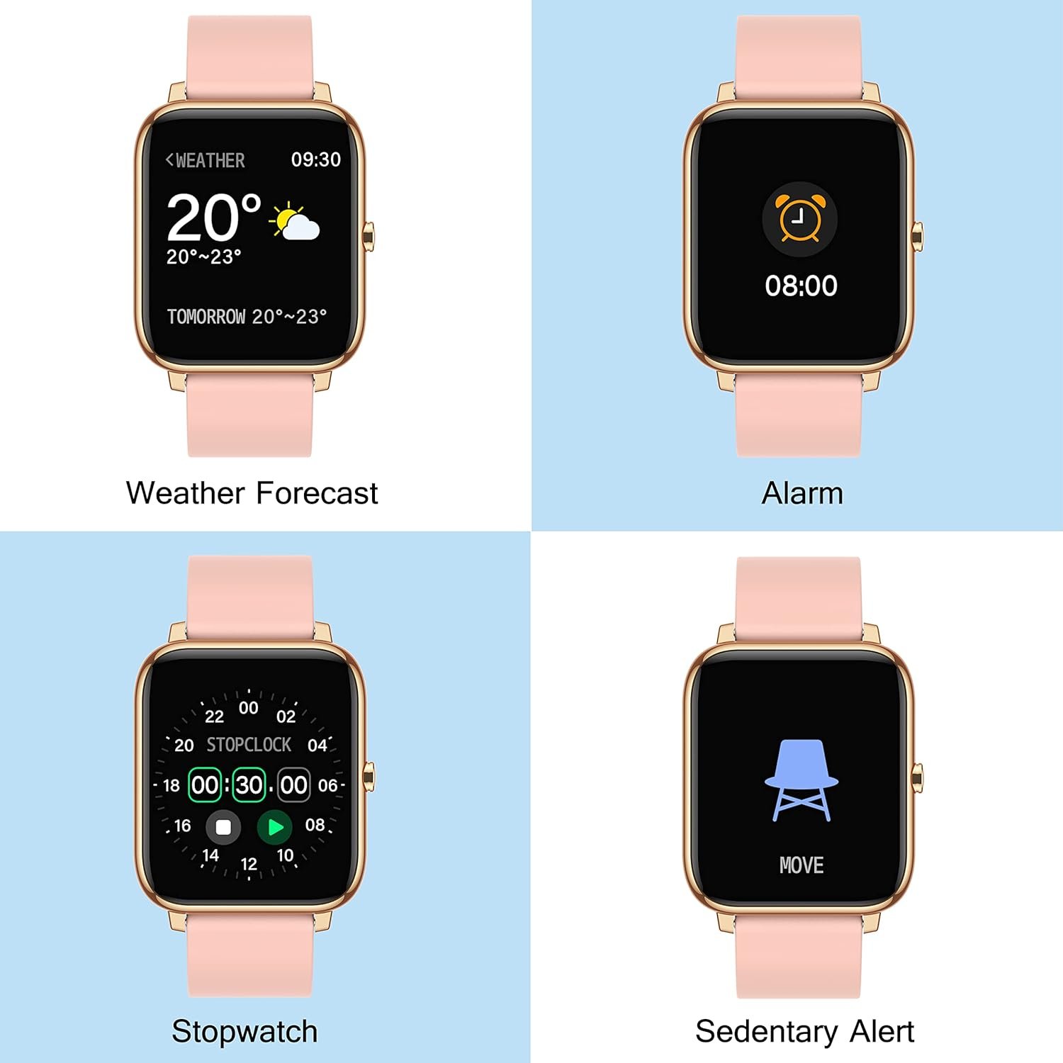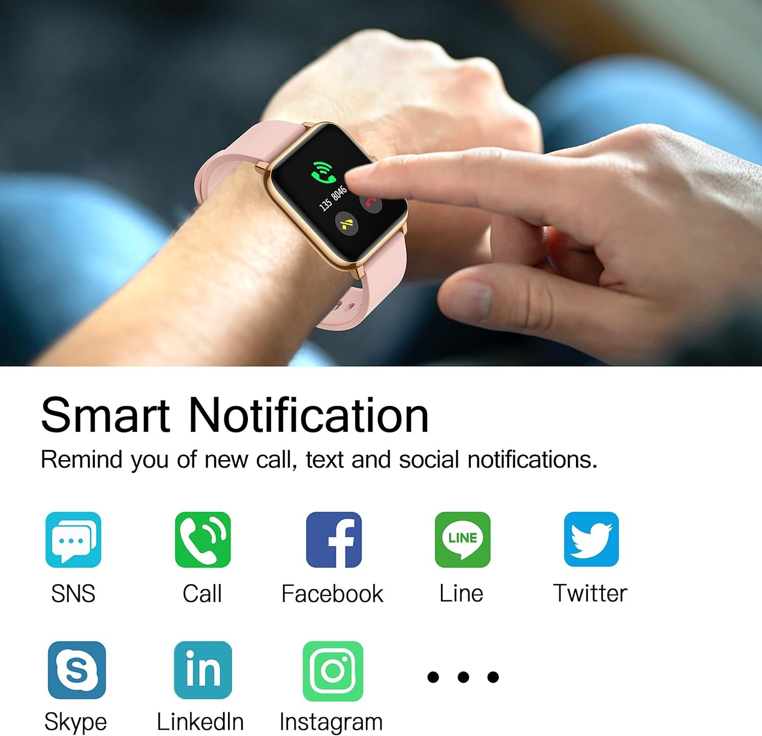 Perfect Personal Partner: Stay connected with call, text and other app notifications, and convenient tools like timer, stopwatch, wrist sense, DND mode, find phone, sedentary reminder, music control and weather display.