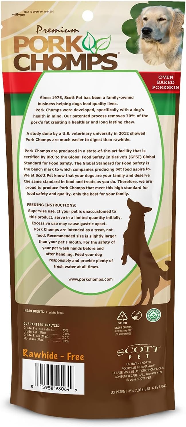 Premium Pork Chomps 8” Baked Rolls are fully digestible and the perfect rawhide alternative for your pup!! Pork Chomps are made from baked pork skin creating a healthy, low fat, high protein dog chew. This wholesome chew is made with limited ingredients, free of artificial flavors, dyes and preservatives, and preferred by dogs everywhere! Premium Pork Chomps are the long lasting rawhide alternative that will keep you pup constructively chewing for hours! In 2012, The University of Illinois College of Veterinary Science conducted a study which proved pork skin to be 99.9% digestible and significantly more digestible than beef rawhide. Offering a variety of sizes, shapes and flavors, Premium Pork Chomps is the chew dogs crave and pet parents can feel good about too! Safe and Healthy Premium Pork Chomps 8” Baked Rolls are the right size for Small Dogs, Medium Dogs and Large Dogs. 2 Count Resealable Package.