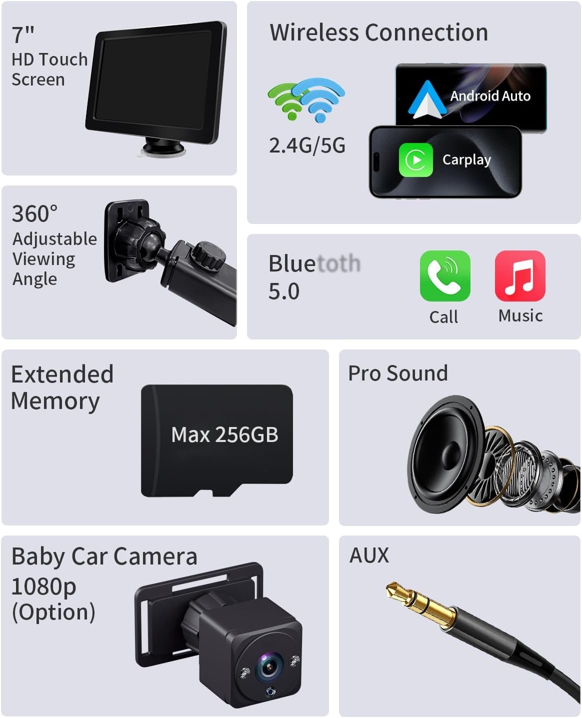 Supports memory cards and USB drives up to 256GB, effortlessly enjoy your music and videos on the go