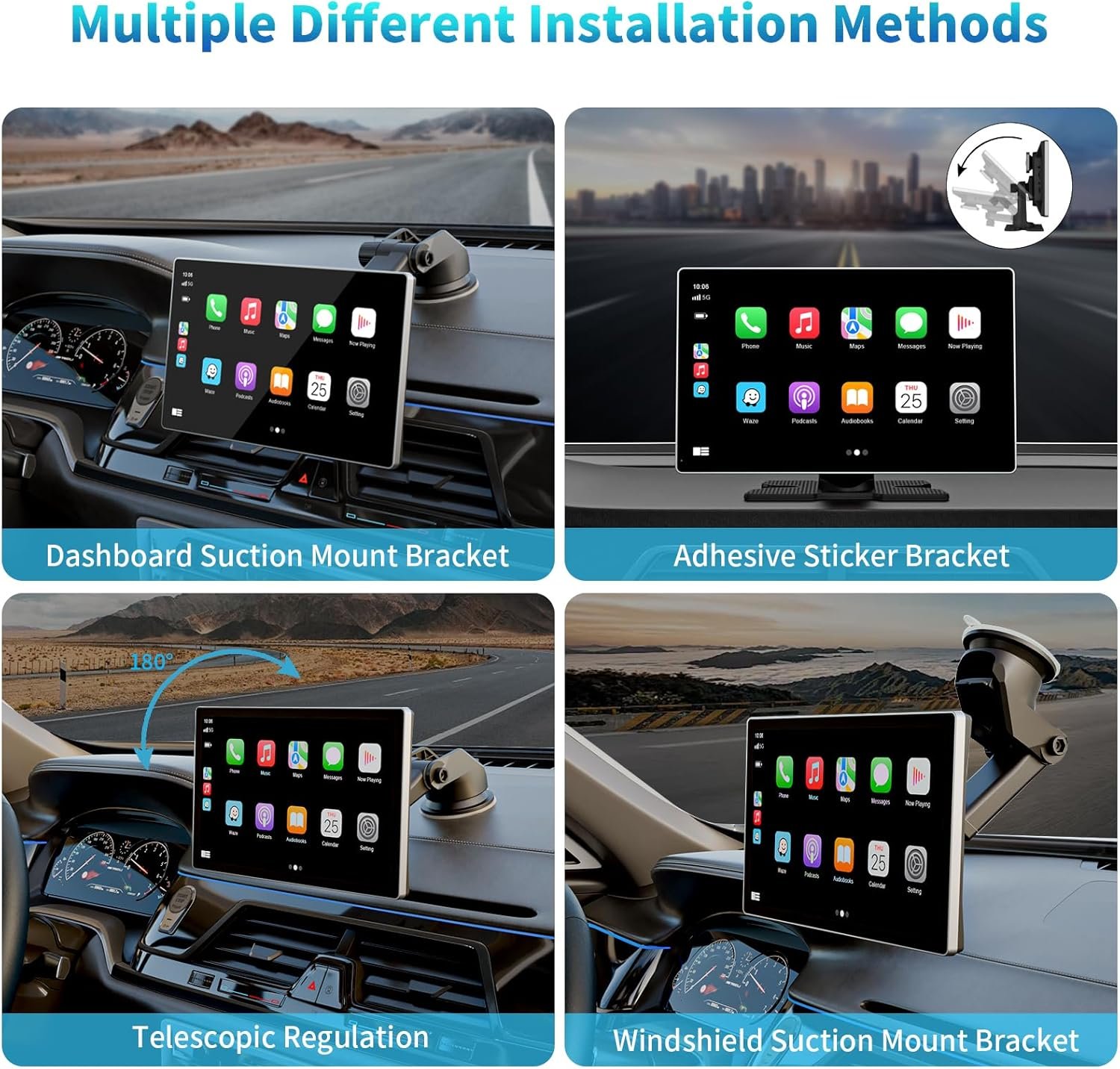 ✅【Online Maps and Real-Time GPS】:The 9-inch portable apple carplay screen provides precise real-time location and GPS navigation without delay. Allow you to use popular map applications such as Google Maps and Waze to provide real-time route recommendations for traffic congestion and lane changes. This GPS navigation system can use the latest smartphone GPS data for real-time navigation without frequent updates.