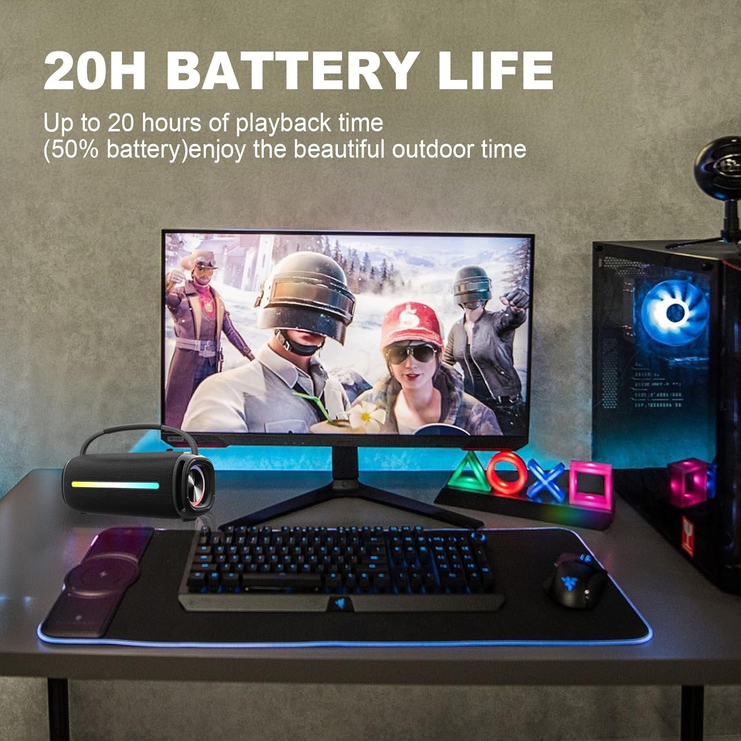 [Loud Stereo Sound] Deliver surprisingly loud and well-balanced sound through 2 drivers. Enjoy up to 20W room-filling sound with punchy bass, strong midranges, and crisp highs. Pair 2 speakers together via Bluetooth to play the same music in perfect sync, double the volume, and create an immersive stereo sound experience.