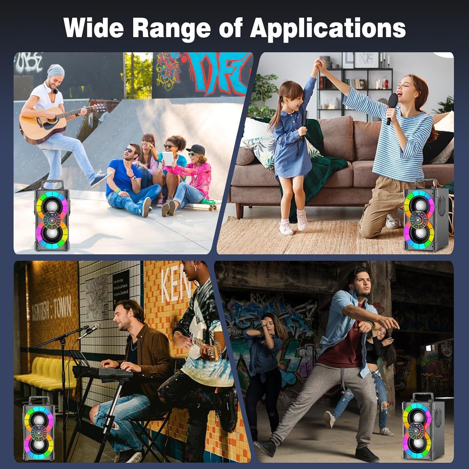 ♫ 【Bluetooth speaker with lights】 The A80 party speaker is designed with multiple dynamic light modes to light up every corner of the party space, and Colorful LED lights can change the lighting effect according to the rhythm of music, which colourful and vibrant can give your home party, beach, camping or outdoor travel an exciting atmospher. You can easily turn on and off the LED lights with long press one button.