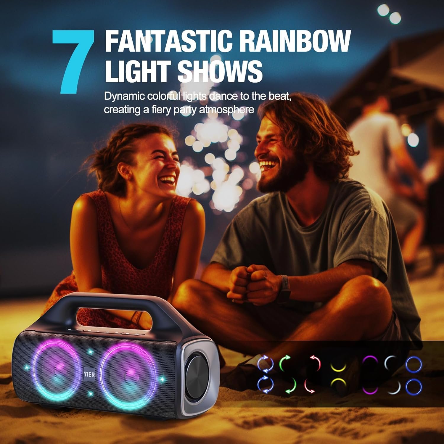 【TWS Stereo Surround and Light Show】Pair 2 of YIER Bluetooth speakers with lights to get the TWS function and a fully immersive and spatial audio experience. Also, the light show of speakers bluetooth wireless is crazy, it is a brand new beating mode, occupy your field of vision, light up the fiery party, and push the passion to a new level.