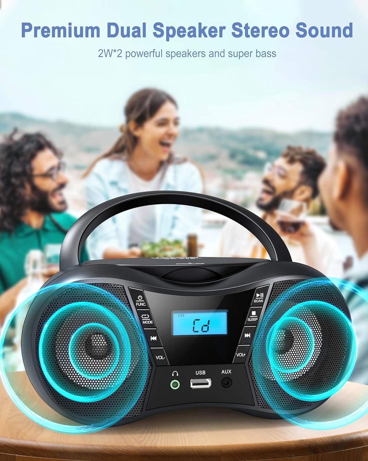 【Sleep Timer+Worry Free】: This boombox cd player includes a sleep feature where you can set a sleep time of 10-90 minutes, timed to turn off. And the cd boombox also equipped with a 3.5 mm headphone jack, so you can enjoy your personal music feast quietly without worrying about disturbing others. This great boombox with cd player is suitable for any venue and is the best choice for gift giving. We also offer a 12-Month warranty, 30-Day refund and 24/7 customer service for you
