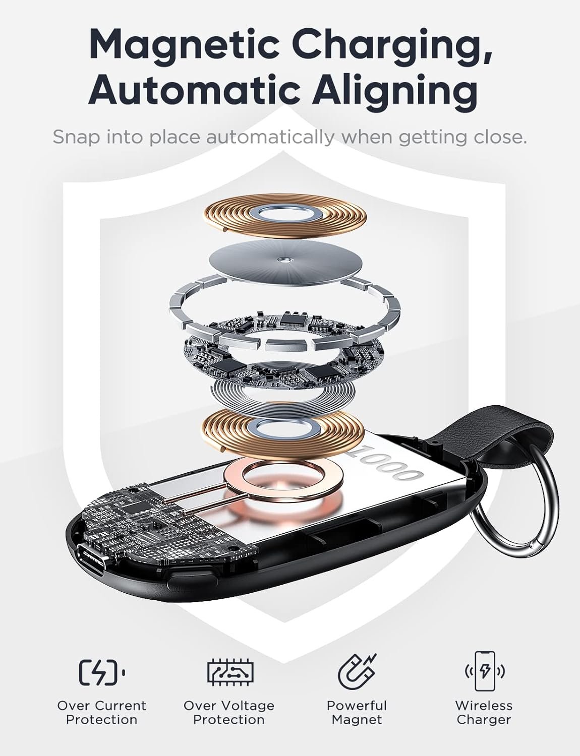 Portable Charger for Convenient Charging:Our Apple Watch keychain charger features a tiny size, portable and compact design, making it possible and convenient to carry around for daily or travel use. Slide the car key-sized wireless charger to your pocket/wallet, or clip it onto your key ring or backpack zipper to avoid dropping it accidentally