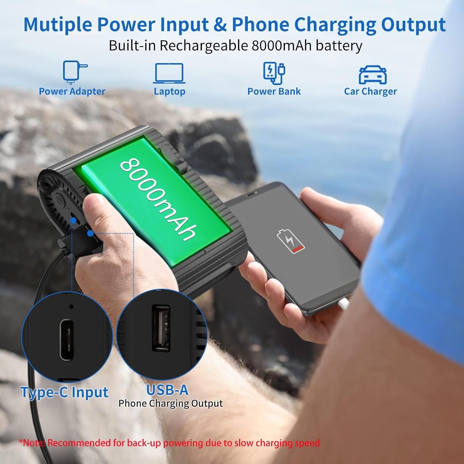 Powerful and Long-Lasting Performance: Experience powerful cooling with three wind speed settings and an 8000mAh built-in battery that lasts up to 24 hours on the lowest setting. Perfect for outdoor activities, the low battery warning ensures you’re always informed when it’s time to recharge, keeping you cool and comfortable throughout the day.
