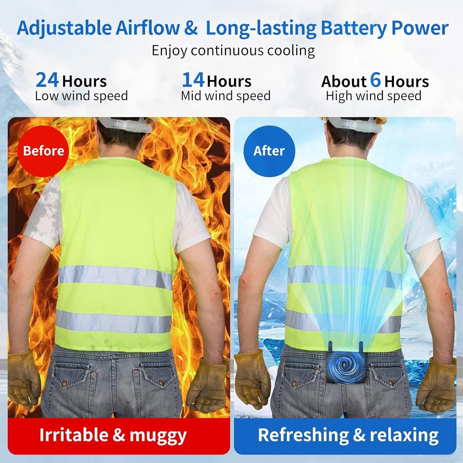 Veakson powerful and long-lasting personal udershirt fan that blow cold air has 3 wind speed settings and a built-in 8000mAh battery that can last for up to 24 hours on the lowest setting, making it perfect for outdoor activities to stay cool. The portable rechargeable fan also has a low battery warning, so you’ll always know when it’s time to recharge.