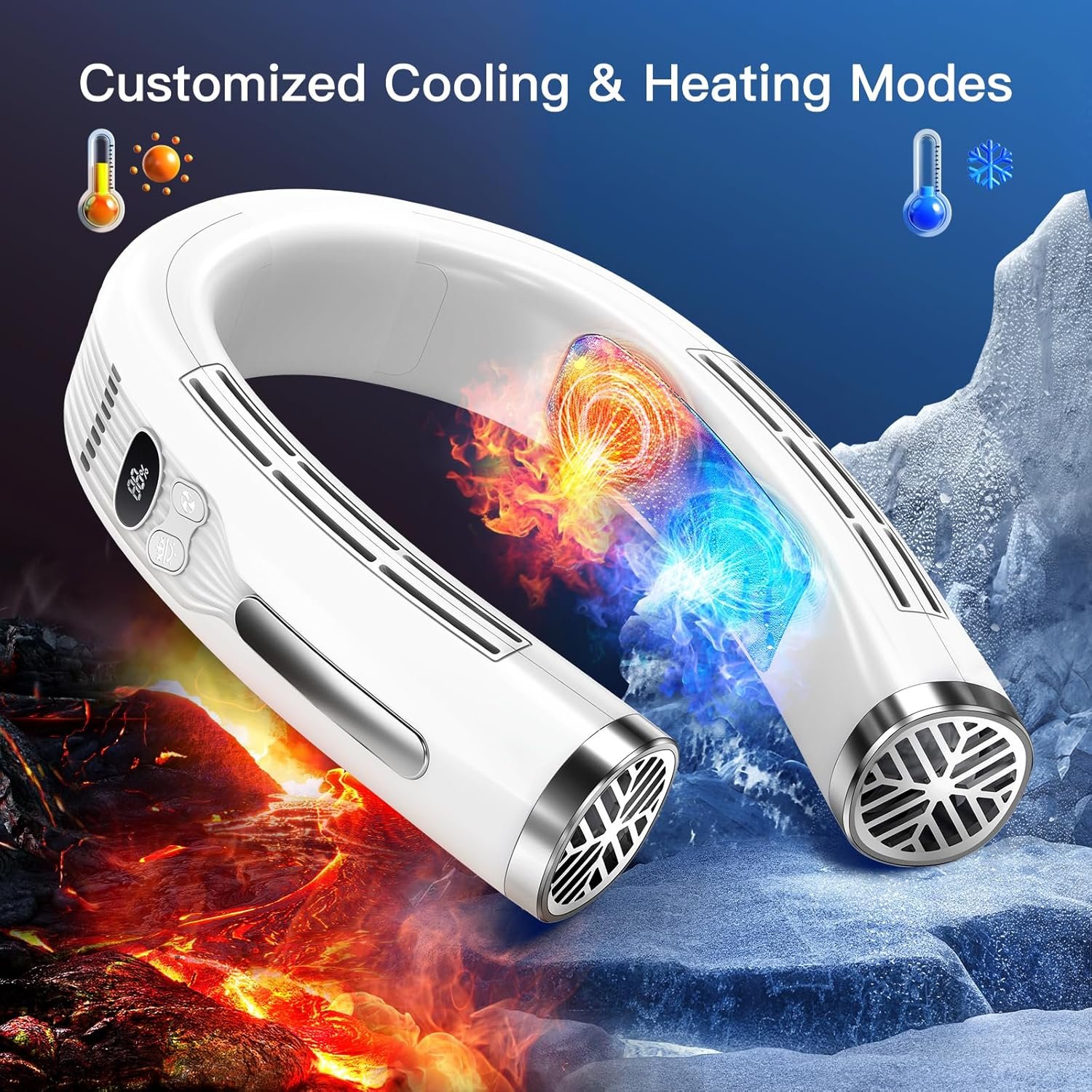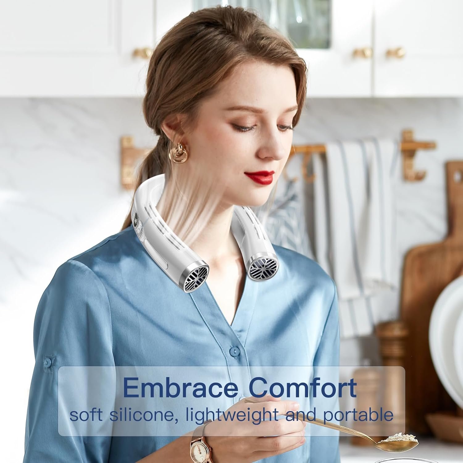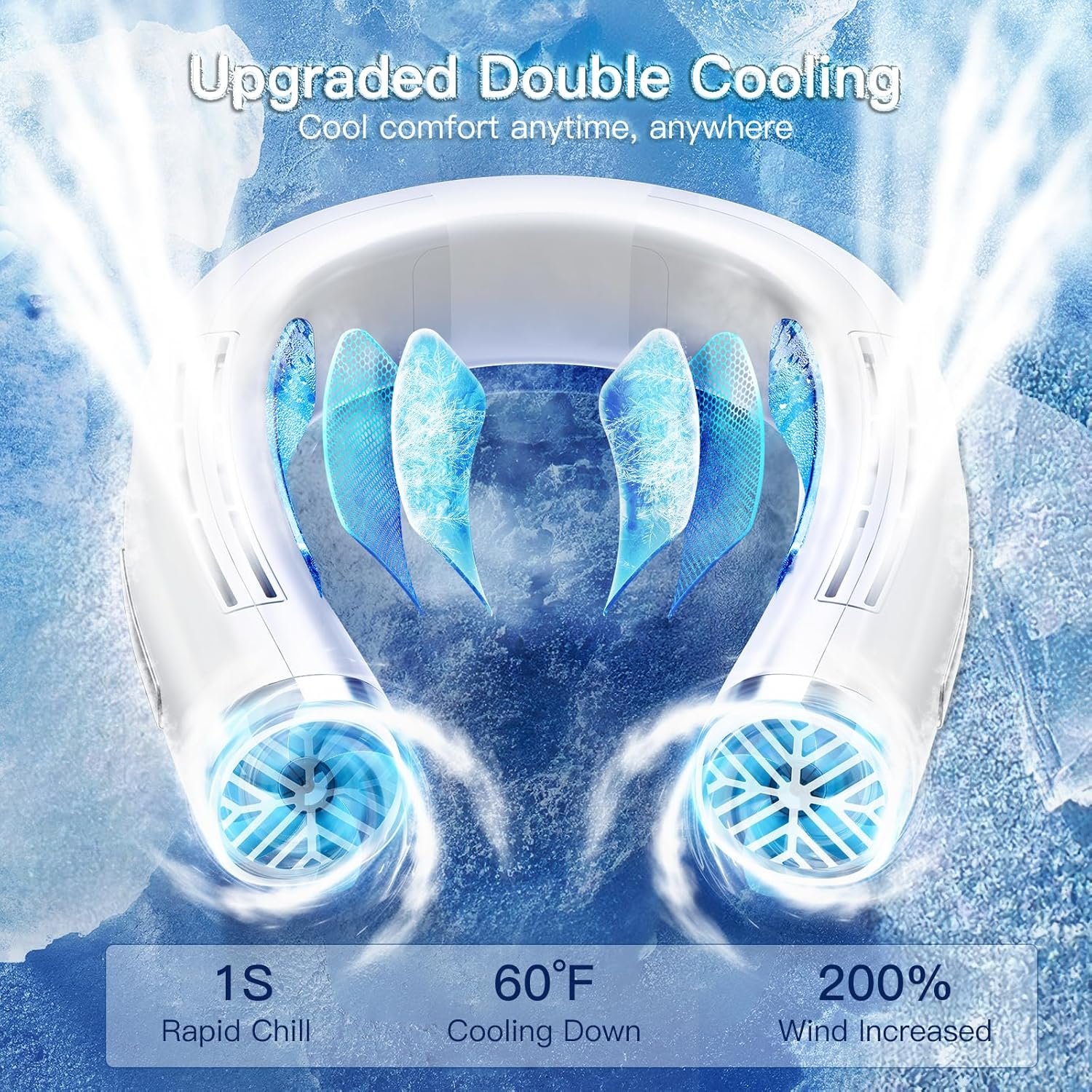 🧊[Extended Cooling Range]This cooling neck fan equipped with powerful Aerodynamic motors increasing airflow and cooling effect by 200%, delivering an ultimate cooling experience. With upward and downward vents, it offers wider coverage for your face and neck, ensuring all-day comfort and free your hand.