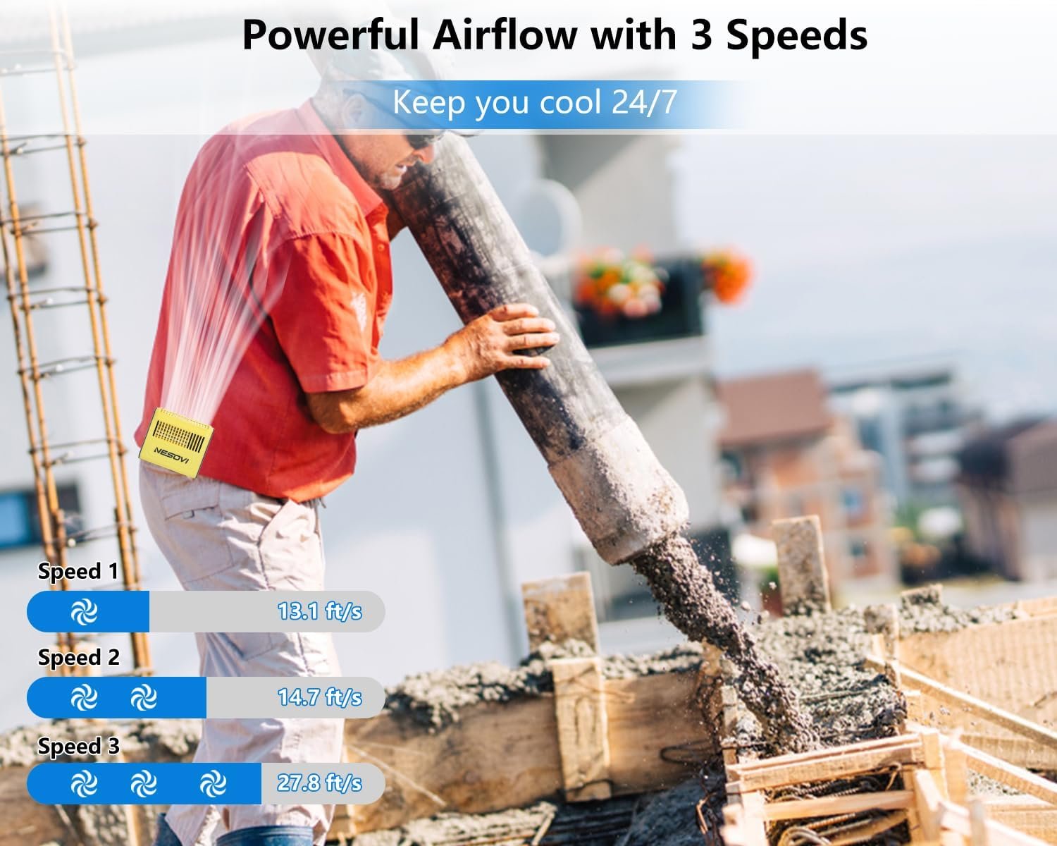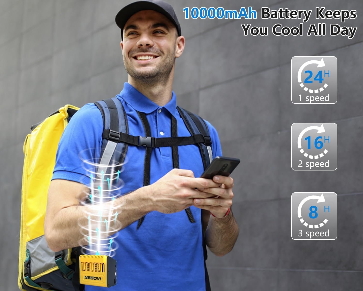 Large capacity & Long working time: The waist rechargeable fan comes with a high 10000mAh battery. In terms of battery life, it can be used continuously for 24H. No matter where you are, the waist cooling fan will keep you cool and comfortable all day, enjoy summer without worry