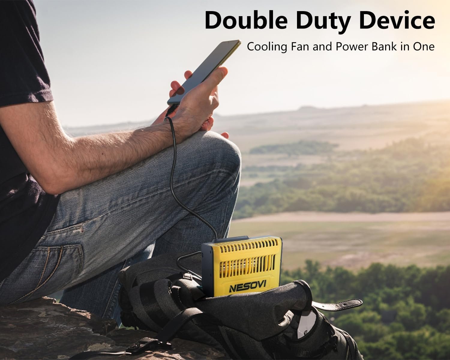 As Power Bank: The wearable waist fan can be charged via USB, using a DC5V/2A adapter, it can be fully charged in just 6 hours, eliminating the trouble of purchasing batteries. At the same time, it can also be used as power bank to escort you in times of crisis