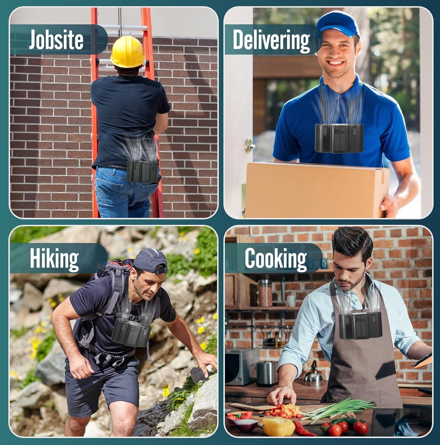 UNLEASH THE GIFT OF COOLNESS FOR LOVED ONES – Elevate the gifting experience with our 20000mAh wearable waist fan, the perfect present for family, friends, or colleagues. Whether it’s for birthdays, holidays, or special occasions, give the gift of instant cooling comfort and outdoor convenience, ensuring your loved ones stay refreshed and comfortable during their summer escapades.