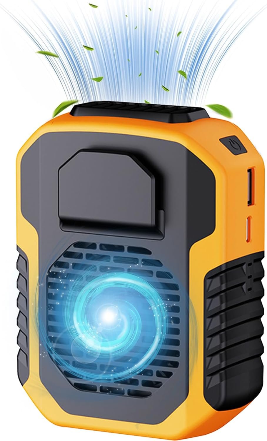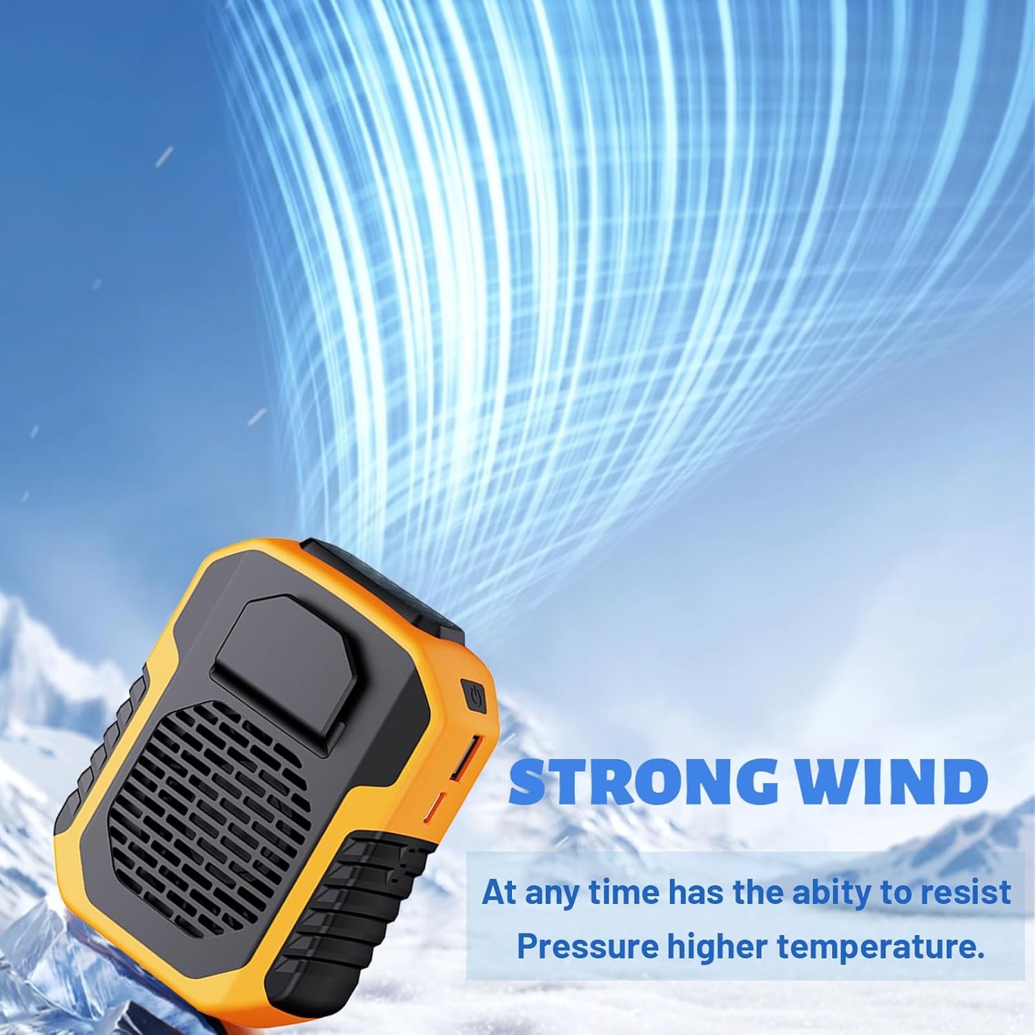Upgraded Waist Fan Huang:Experience the ultimate cooling comfort with our personal fan. Equipped with an advanced turbine motor, this battery powered fan continues to deliver air even when covered by clothing, ensuring continuous airflow. The mini fan comes with a convenient waist clip, freeing your hands, or can be hung around your neck using the provided neck webbing, making it an ideal companion for staying cool in the summer