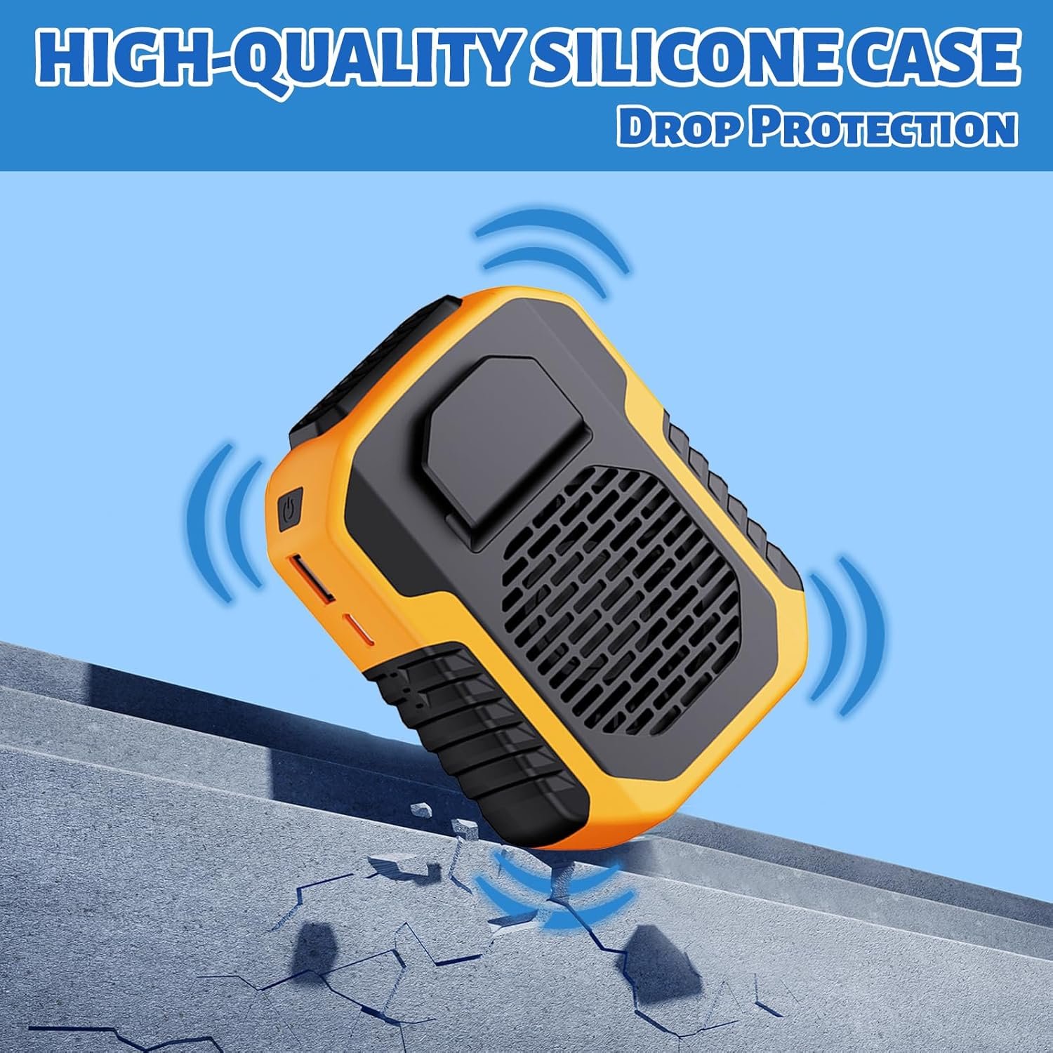 Our mini portable waist fan, encased in a premium silicone leather cover, is crafted for diverse outdoor activities and professions such as farming and construction. The high-quality protective cover not only provides a non-slip grip but also absorbs shocks from accidental drops, ensuring the fan remains intact and functional in any rugged environment.