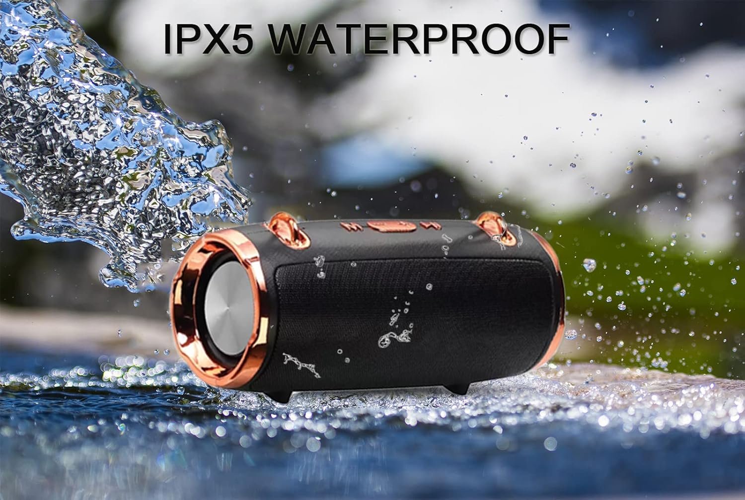 【IPX5 Waterproof Protection】 IPX5 Waterproof Protection, The Bluetooth speaker is resistant to splash, rain, gentle spra, so it is suitable for shower room, swimming pool or beach.No worries about weather and outdoor condition, be the Rocker on your trip. It is an excellent waterproof speaker for outdoor sports