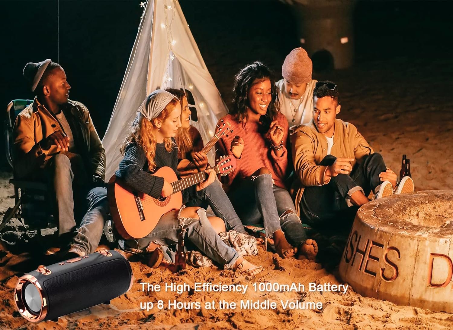 【Large volume and Longer Battery Playtime】With the top rechargeable li-ion battery,the Bluetooth speaker has an unparalleled 8 hours of continuous music playback time.The Bluetooth speaker has an independent volume system, and you can control the volume according to your preferences. Long press the volume “+” / “-” to control the volume of the speaker, and the speaker will adjust the volume according to the length of time you press it. Enjoy music day to night never stop, happiness never ends