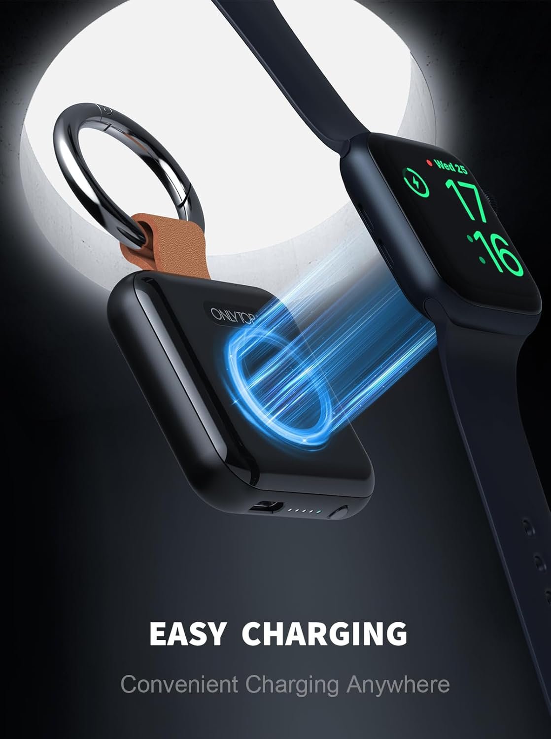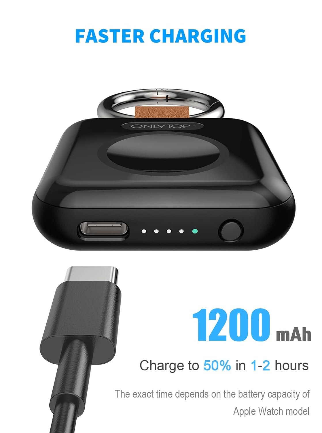 ONLYTOP Portable Wireless Charger for Apple Watch 1200mAh, Compatible with Apple Watch Series 9/8/UItra/7/6/5/4/3/2/1SE, Compact Magnetic iWatch Charger Keychain Style Travel Essentials