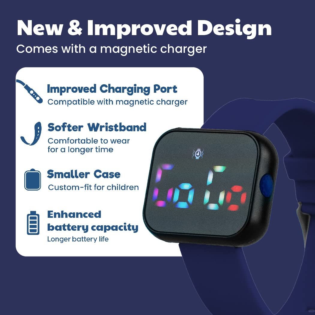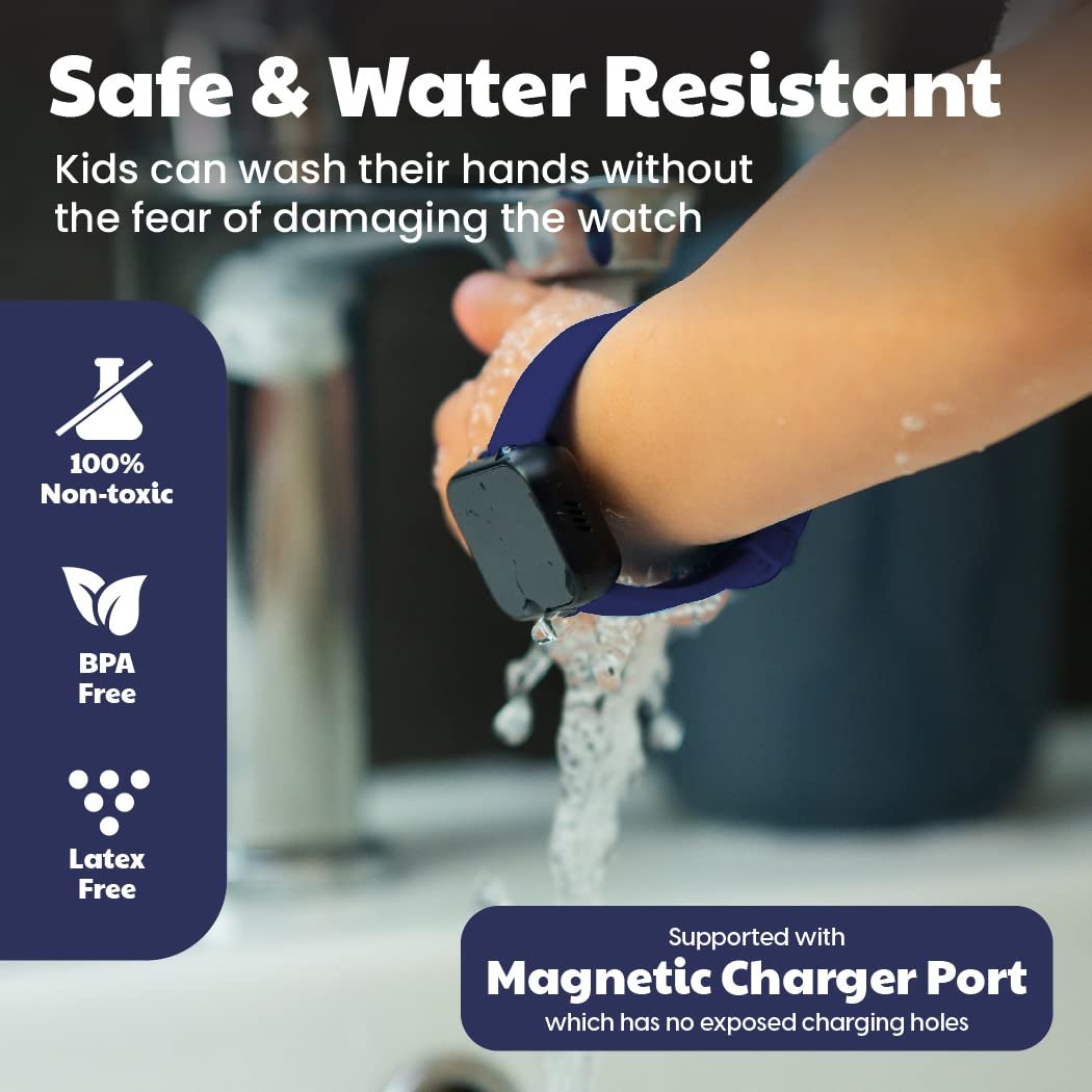 IMPROVED WATER-RESISTANT AND BATTERY LIFE – No need to remove the watch every time your kids go to the bathroom! They can wash their hands or play with water without fear of damaging the watch. Upgraded V2 watch model only needs charging about once a week.