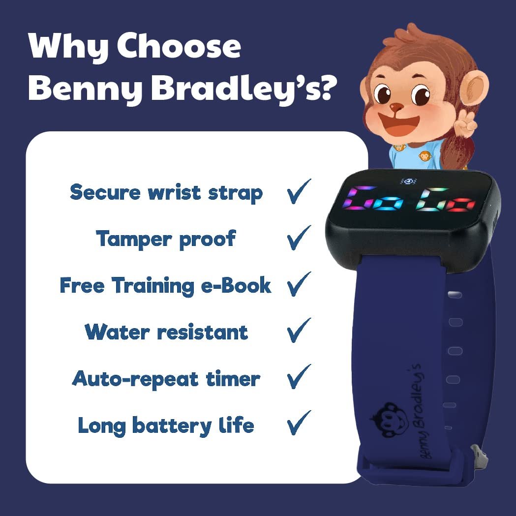 EBOOK INCLUDED – Comes with complementary 18-page picture digital ebook, “Benny Bradley Learns to Potty,” a beautifully illustrated children’s book, It’s fun and educational for potty-training toddlers, Mommies and Daddies! Please note this is meant to be read on a digital reader such as a tablet, phone, kindle, or computer reader device. This watch package does not come with a physical book.
