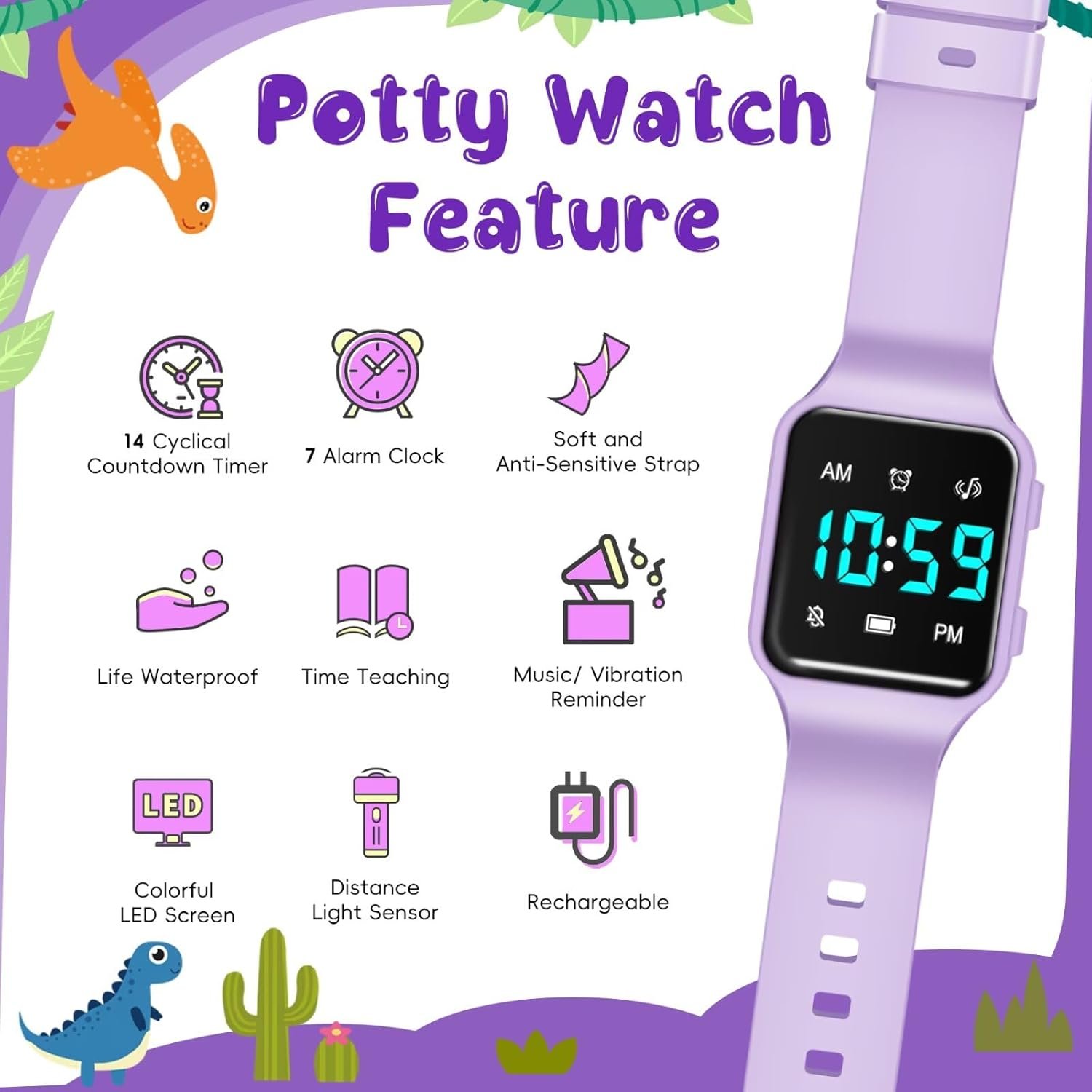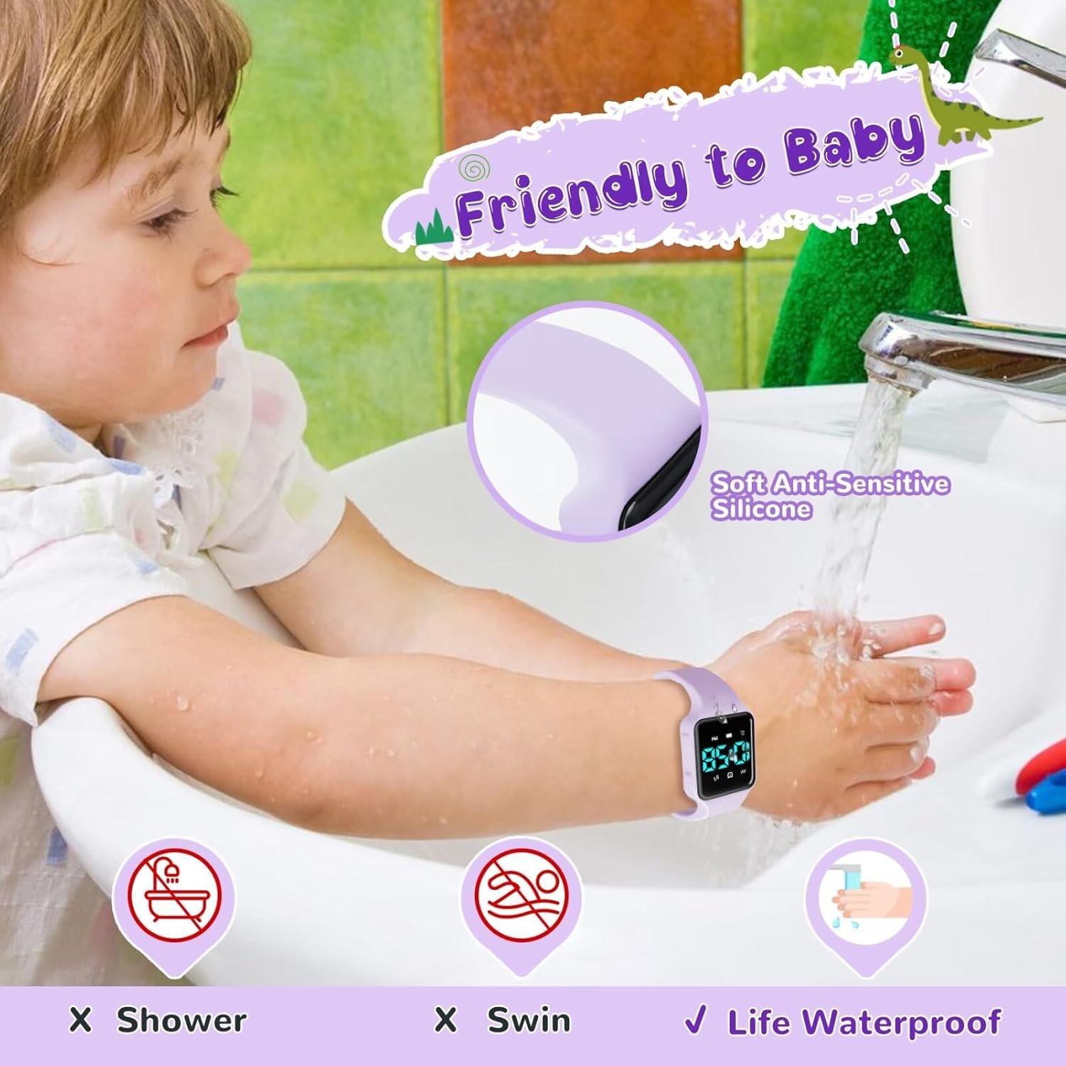 Kid watch really soft and comfortable to wear. The strap is made of friendlysilicone material, so it’s really gentle on their skin. It’s also super lightweight, tough, and sweat-proof.