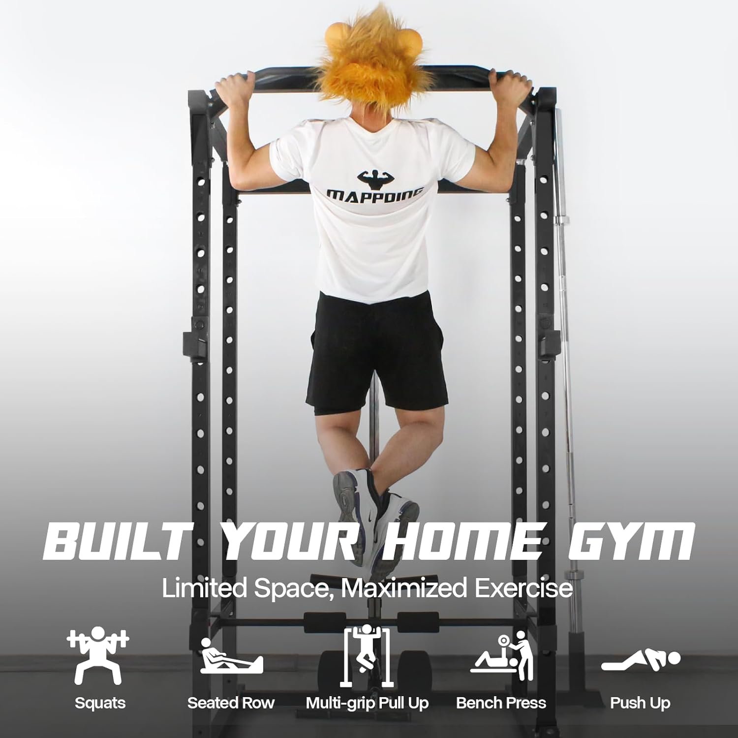 Ideal for Workout Enthusiast: 87.5″ height pull-up bar allows you to perform better pull-ups. Mappding thicker dip bar allows you to train your chest muscles comfortably. 360° Landmines can be used with an Olympic bar or barbell. You can do unlimited exercises in this all-in-one power cage.