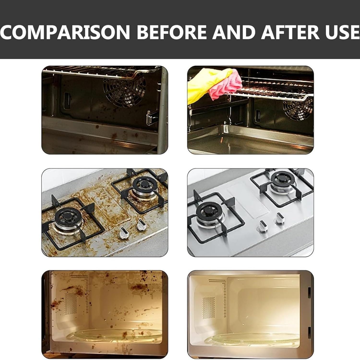 【Scope of application】: This cleaner is suitable for use on a wide range of surfaces, including cooking utensils, stoves, countertops, floors, glass, shoes, car seats, sofas, and more, making it ideal for all your cleaning needs.