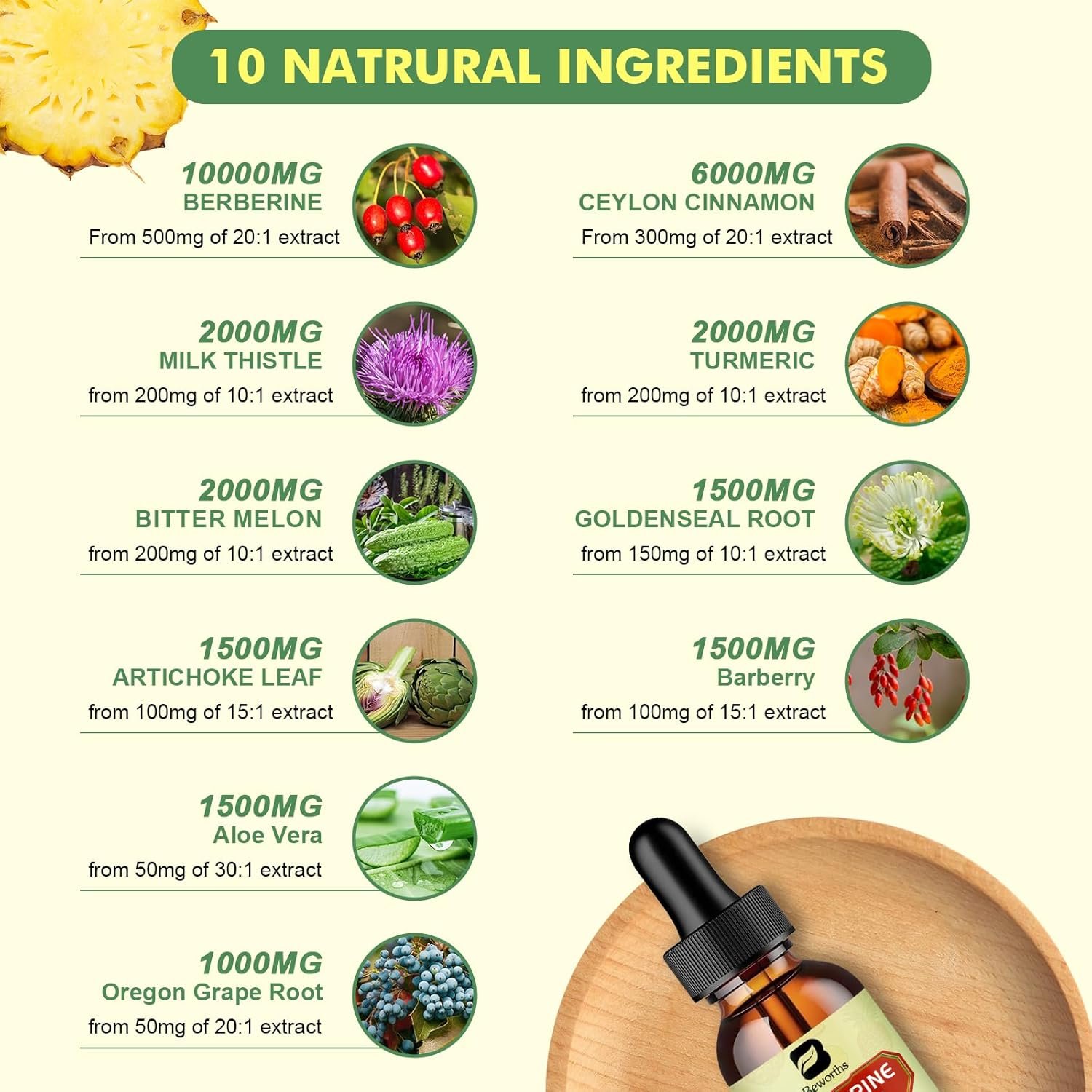 Premium Berberine Supplement – Berberine Liquid Drops with Turmeric, Ceylon Cinnamon, Bitter Melon, Milk Thistle, Berberine Veggie Supplement for Immune, Digestion System and Heart Health Support