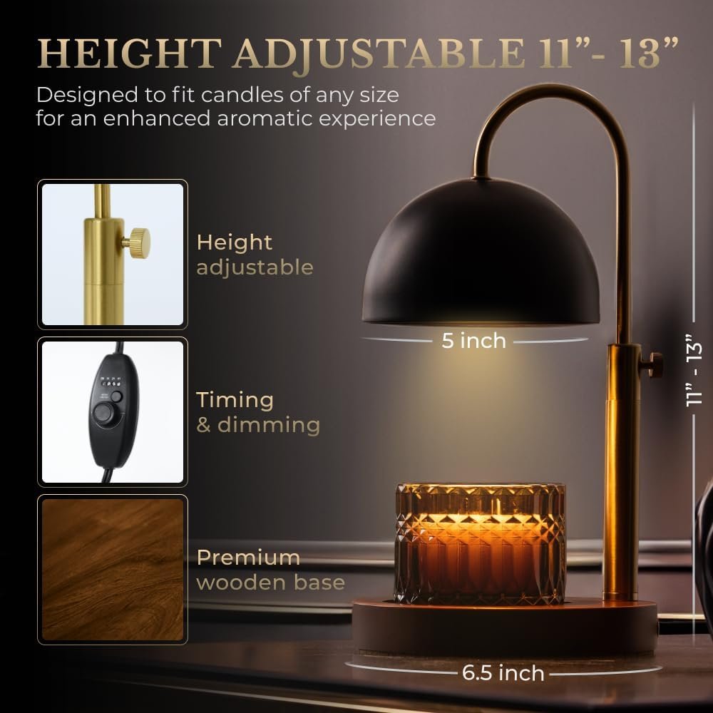 Customizable Ambiance: Easily adjust the candle lamp’s height between 11″-13″ to accommodate various candle dimensions; perfect for adding a sophisticated touch to any room’s decor, this lamp candle warmer ensures precise atmosphere control.