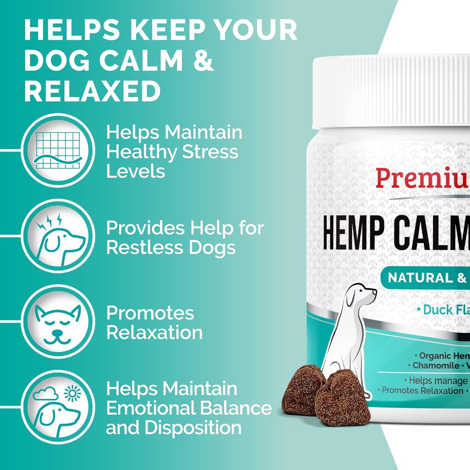 Natural Ingredients for Emotional Balance: With a blend of organic hemp, organic passion flower, chamomile, valerian root, and L-Tryptophan, these dog calming treats maintain emotional balance and reduce overstimulation.