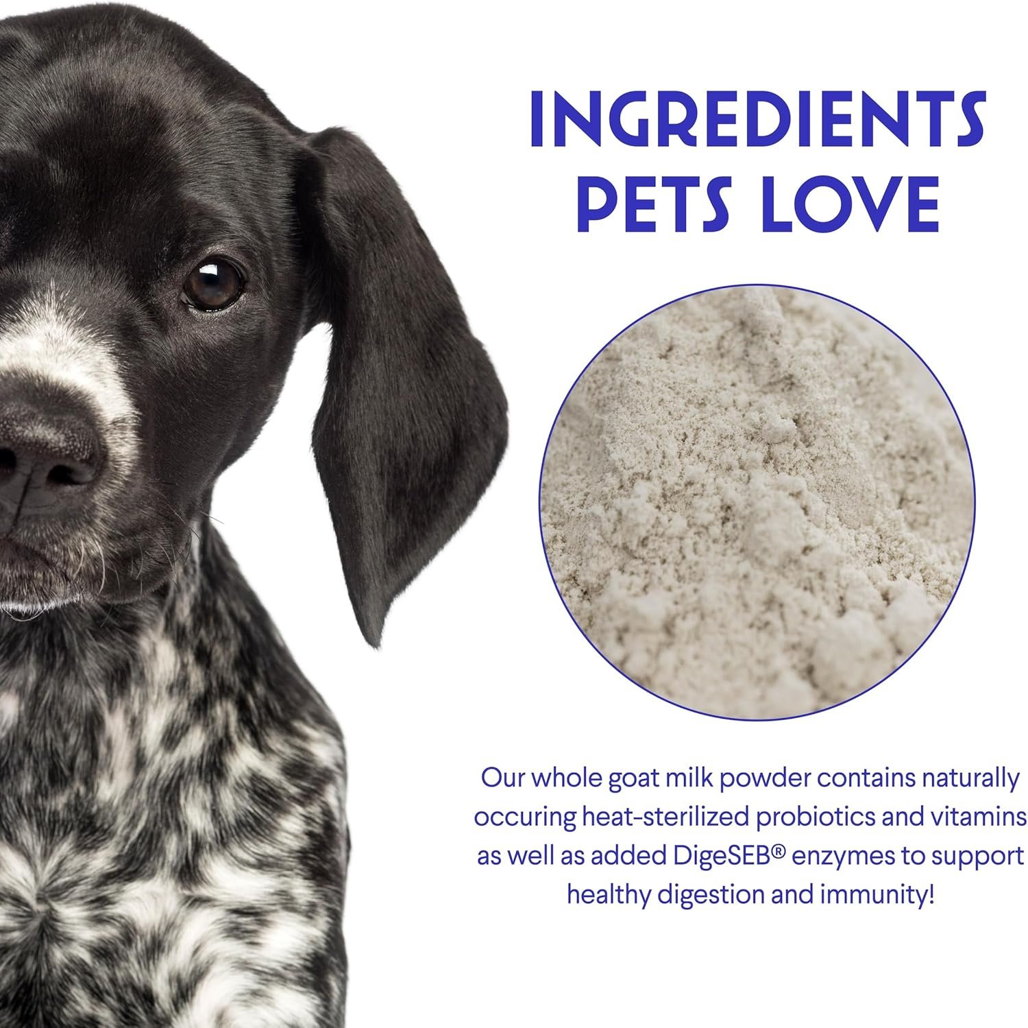DIGESTION, IMMUNITY & ALLERGIES: Our goat’s milk for dogs powder is the simplest solution to give your pet the benefits of goat milk. Our goat milk with probiotics and digestive enzymes helps support healthy digestion, gut health for sensitive stomachs, immune health and allergies. Goats milk for dogs is important for puppies and pets of all ages as it includes important probiotics and enzymes to support overall health.