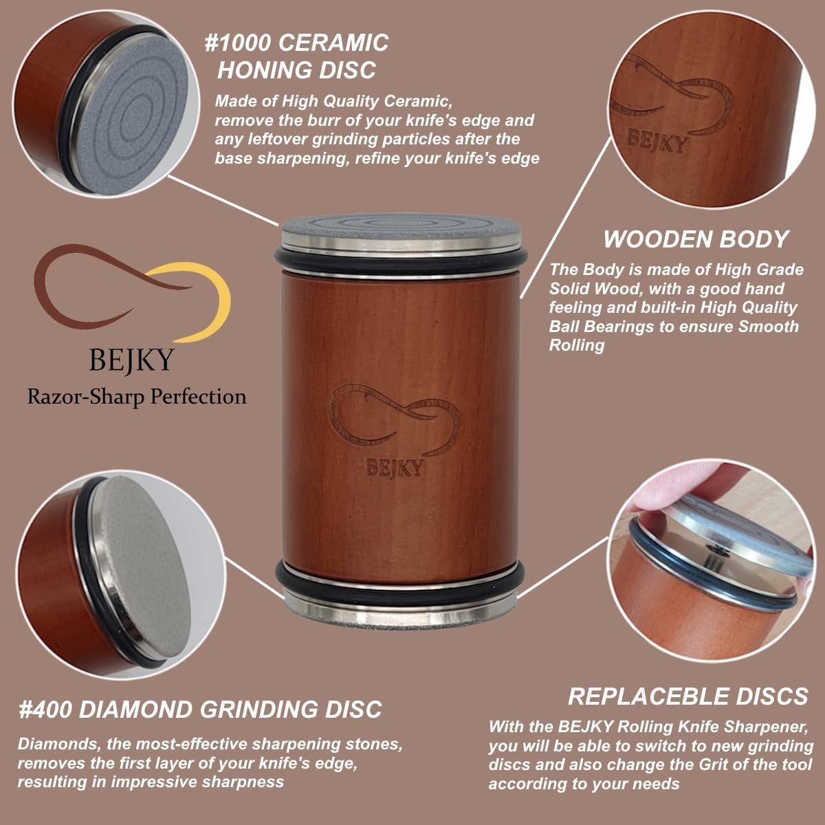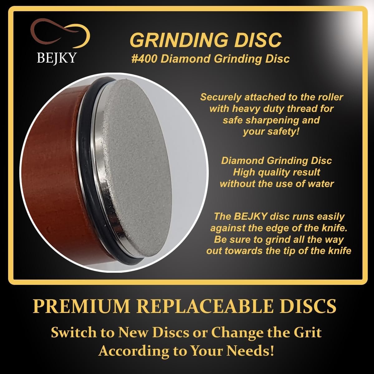BEJKY Rolling Knife Sharpener Replacement Discs – Switch to New Discs when the old are worn out, or Change the Grit According to Your Needs – Get them at our Shop
