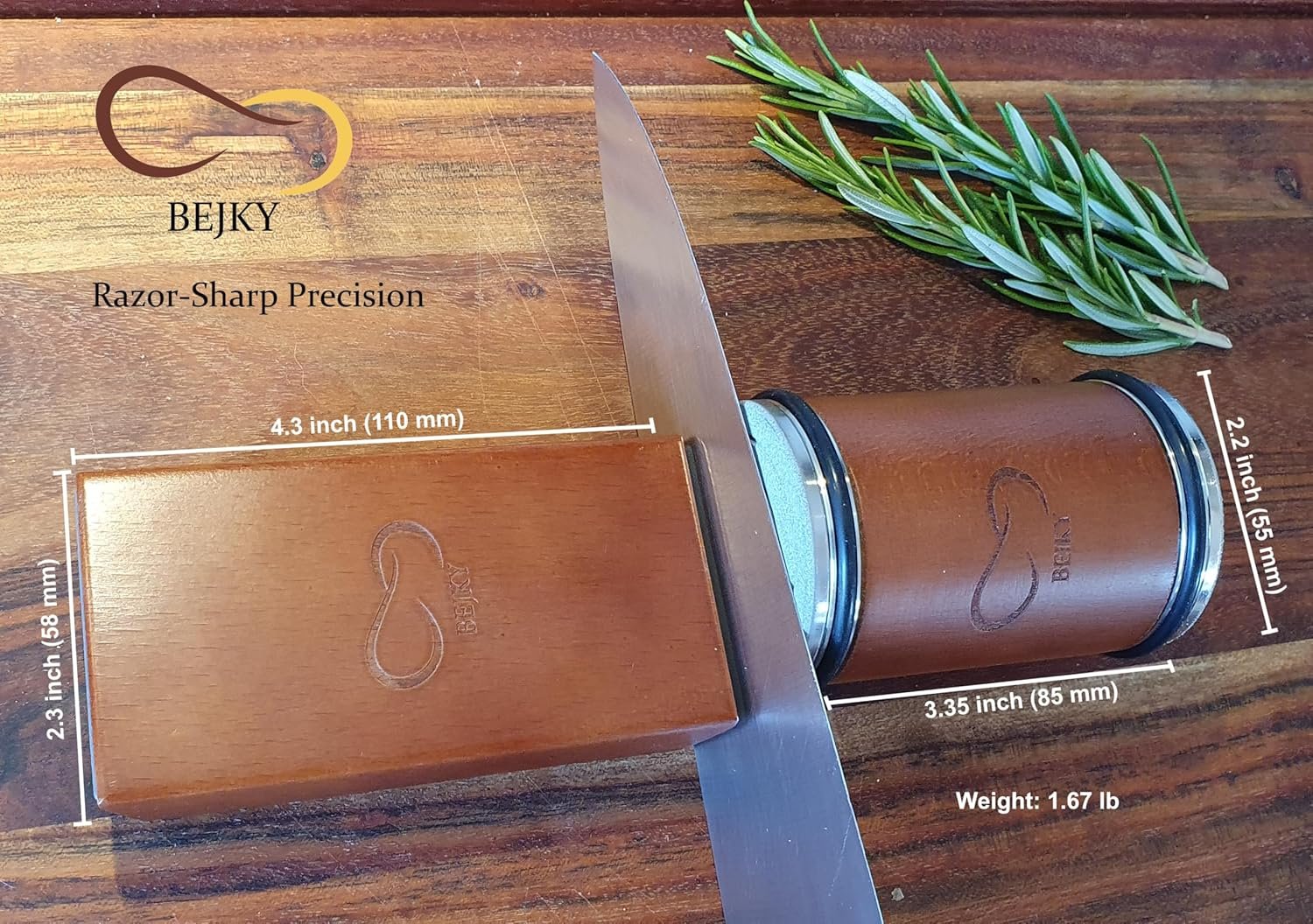 EXTRA STRONG MAGNETS – The magnetic block comes in robust and solid wood, equipped with Super Strong N42 Magnets and provides a stable grinding angle for your knives. The 15 and 20 degrees angles will easily and quickly sharpen any traditional and speciality blade. No more problems with holding the knife at the right angle to the sharpening steel. With the BEJKY Rolling Knife Sharpener Kit you will get a perfect sharpening right away. The Extra Strong Magnets keeps the knife in a fixed angle. Knife Sharpening Made Easy