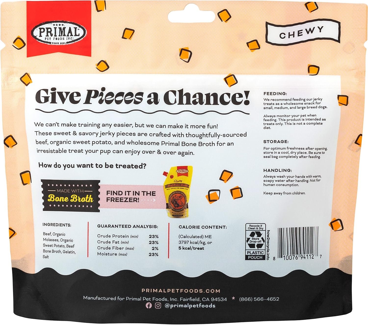Irresistible flavor dogs love. Our beef dog treats are made with real Primal Bone Broth and organic sweet potato for dogs
