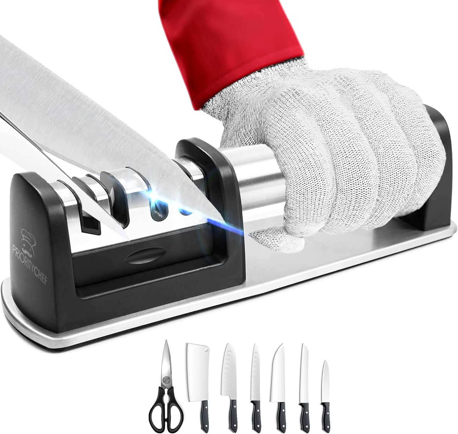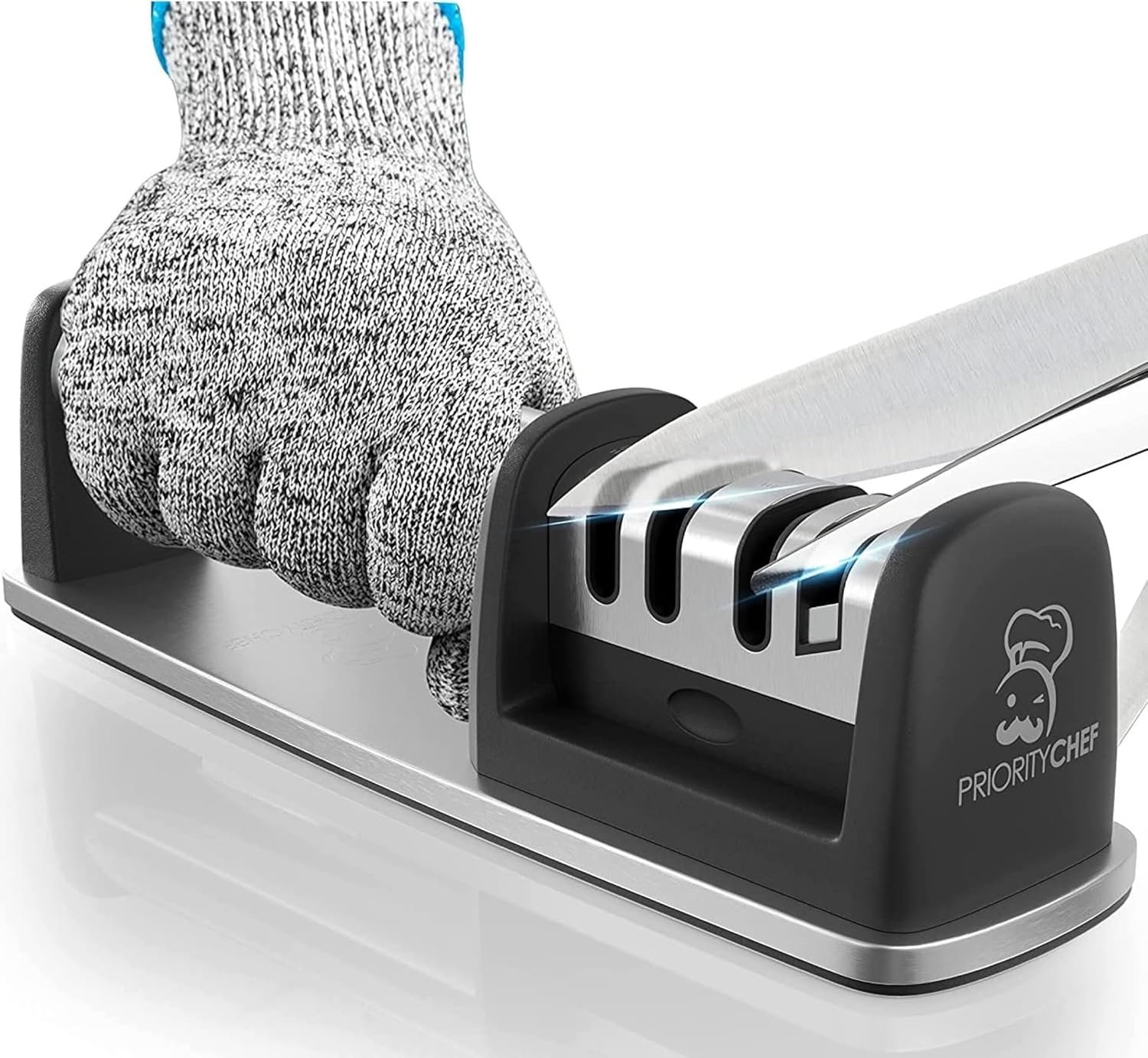 A Sharper Look: That last thing you want is a clunky looking knife and scissor sharpener taking up counter space. That’s why at Priority Chef we designed our professional knife sharpener [afilador de cuchillos] in the clean, minimalist style.