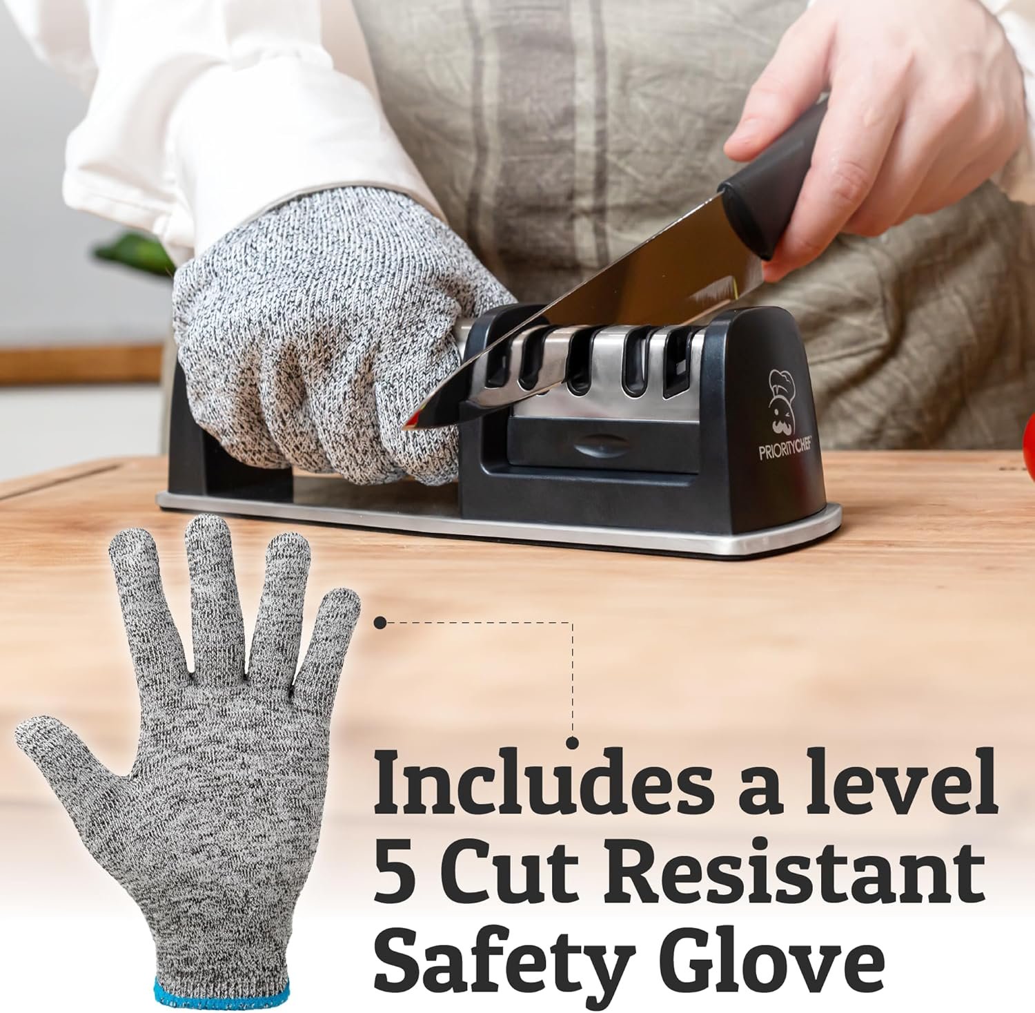 Level 5 Cut Resistant Glove Included: Our diamond knife sharpeners best design features include a comfortable grip for safe control and a soft cushioned base. To make it complete, we added a bonus safety glove and a set of instructions for your knife sharpening needs.