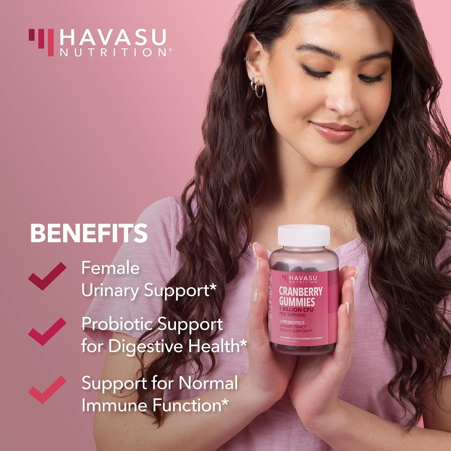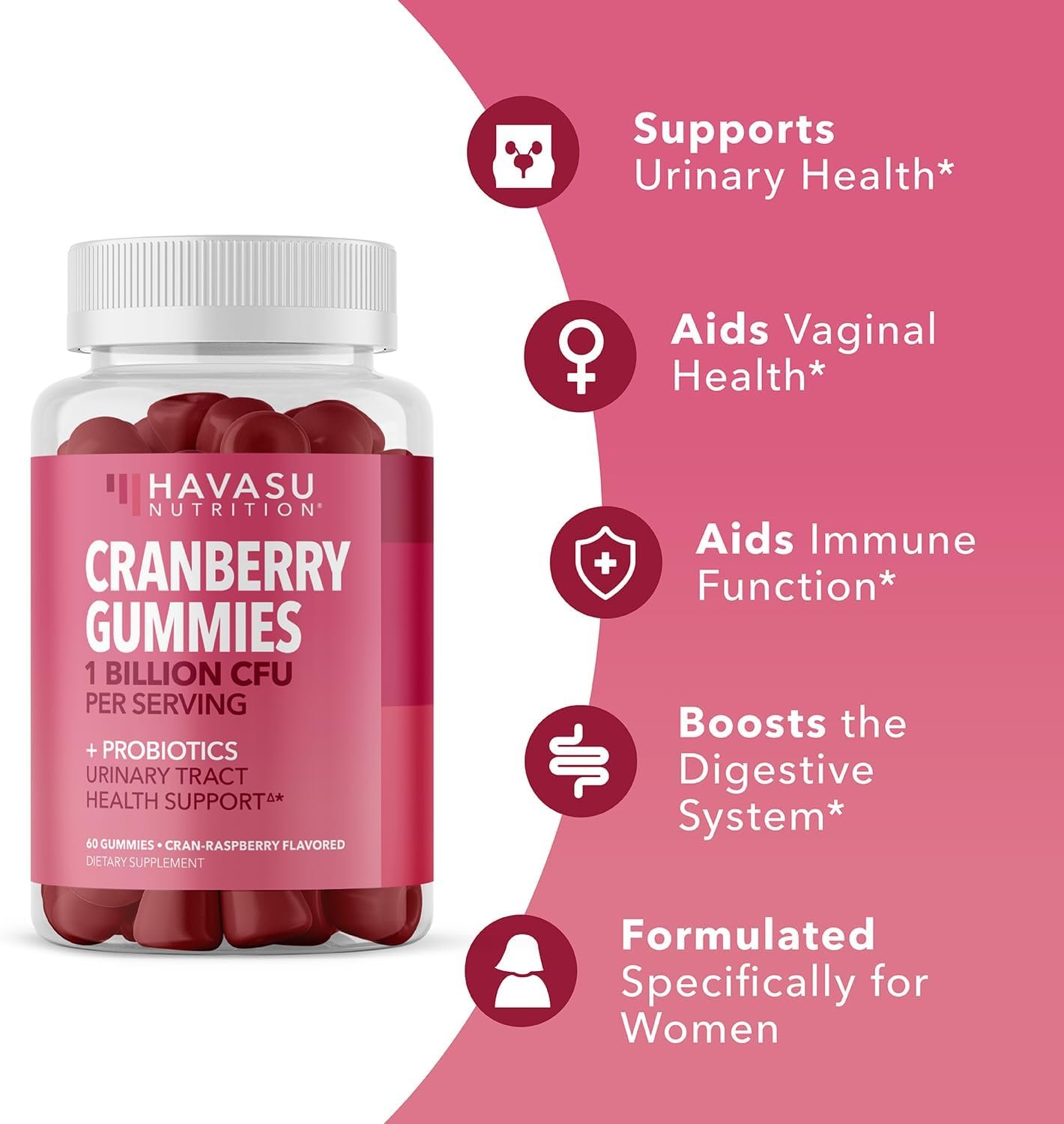 Urinary Tract Health Support – Havasu cranberry gummies for women combine cranberry extract and probiotics to help flush the urinary system, supporting bladder health and promoting urinary tract wellness.
