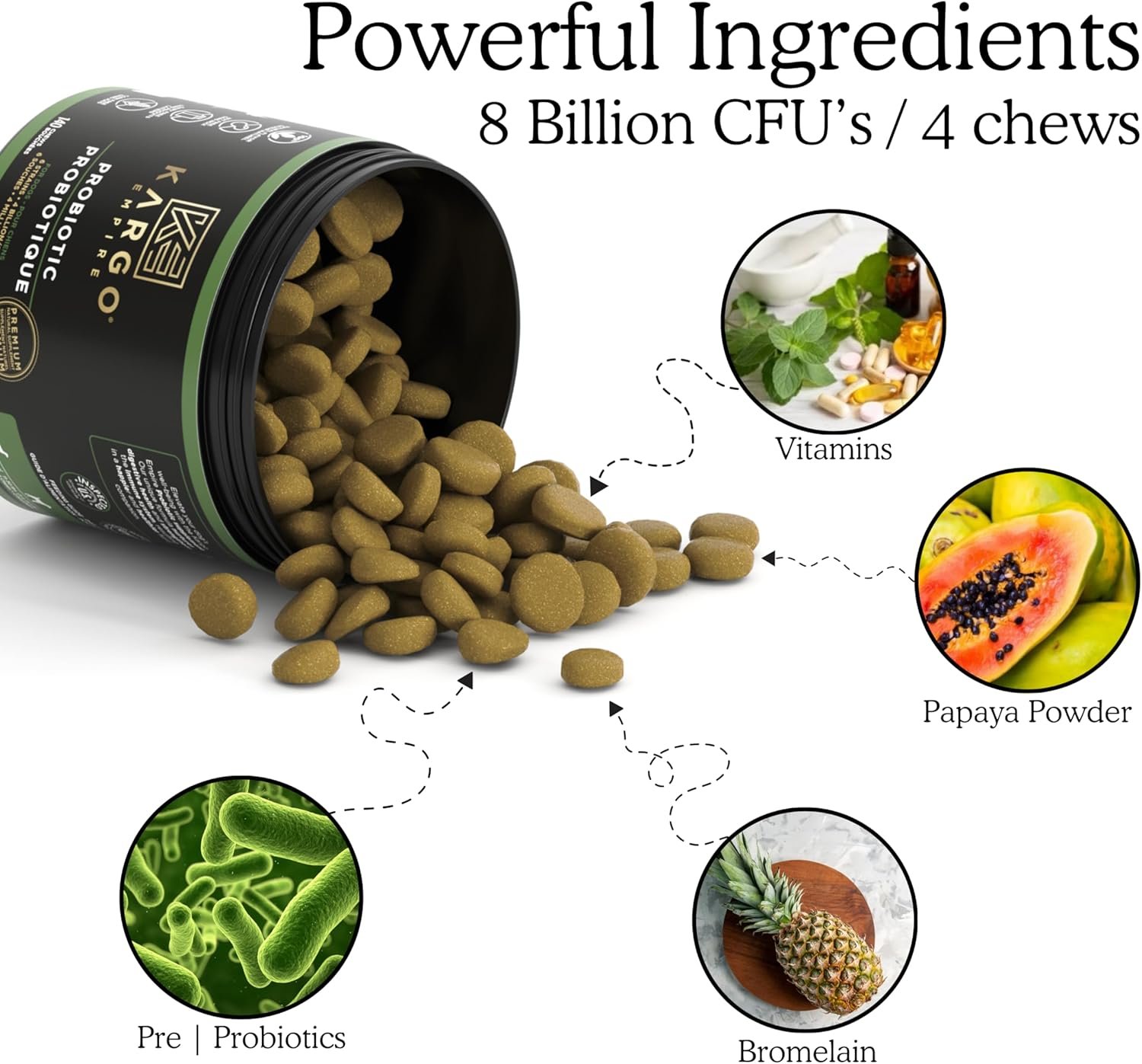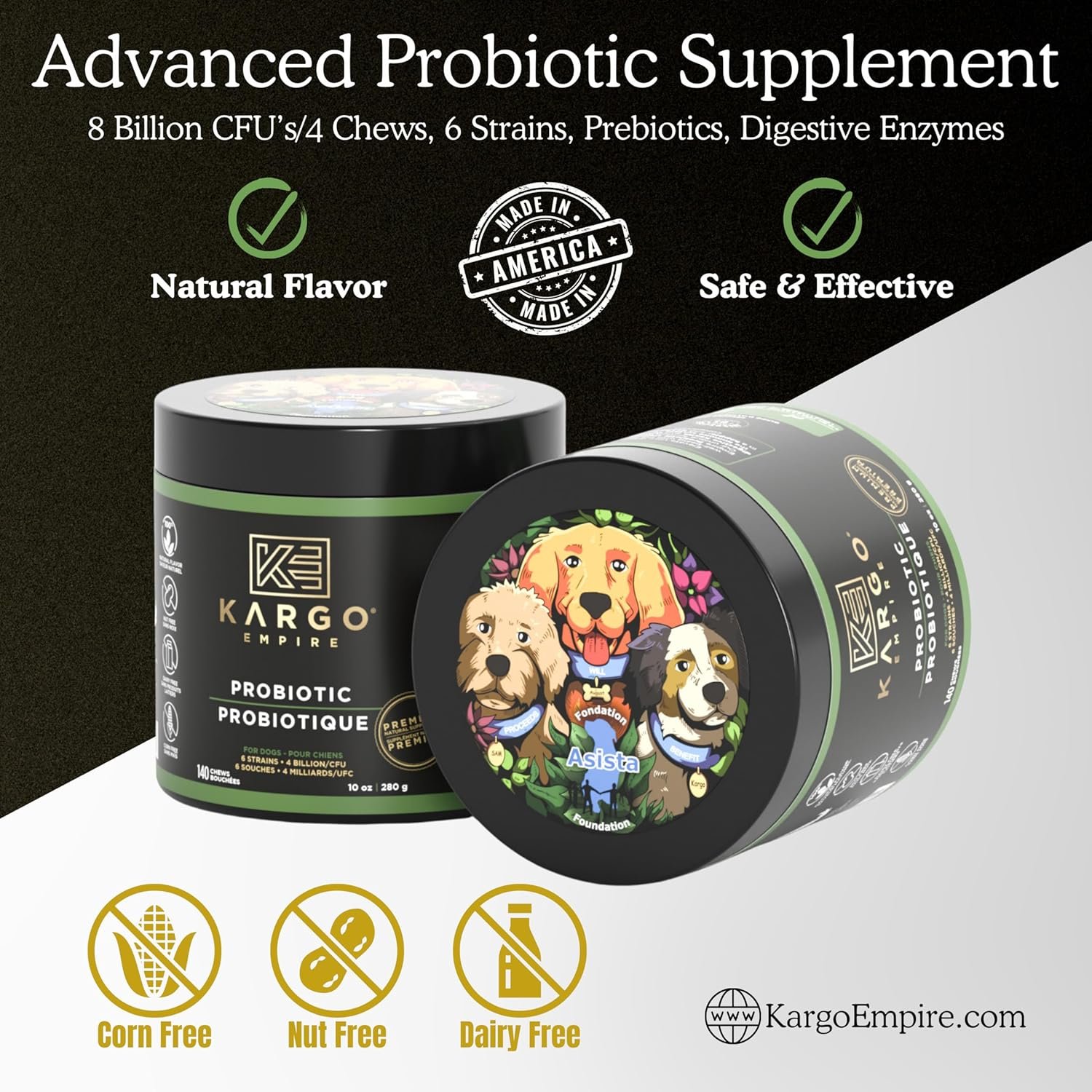 ADVANCED DIGESTION SUPPORT – If your dog is dealing with regular digestive issues like gas, diarrhea, sensitive or upset stomach, constipation, acid, loose stool, bad breath, or other daily issues. Kargo empire Probiotics will help ease these issues and make your canin able to maintain a strong, healthy digestion.