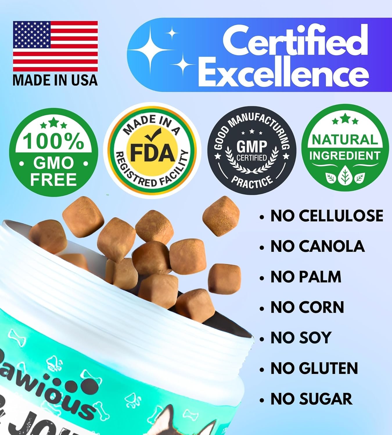 Yummy and Easy: Say goodbye to the struggles of administering pills or powders. Our chews are delicious, and your dog will eagerly look forward to them. Plus, our formula contains no GMO, added sugar, dairy, or corn, ensuring your pet’s health is our top priority.