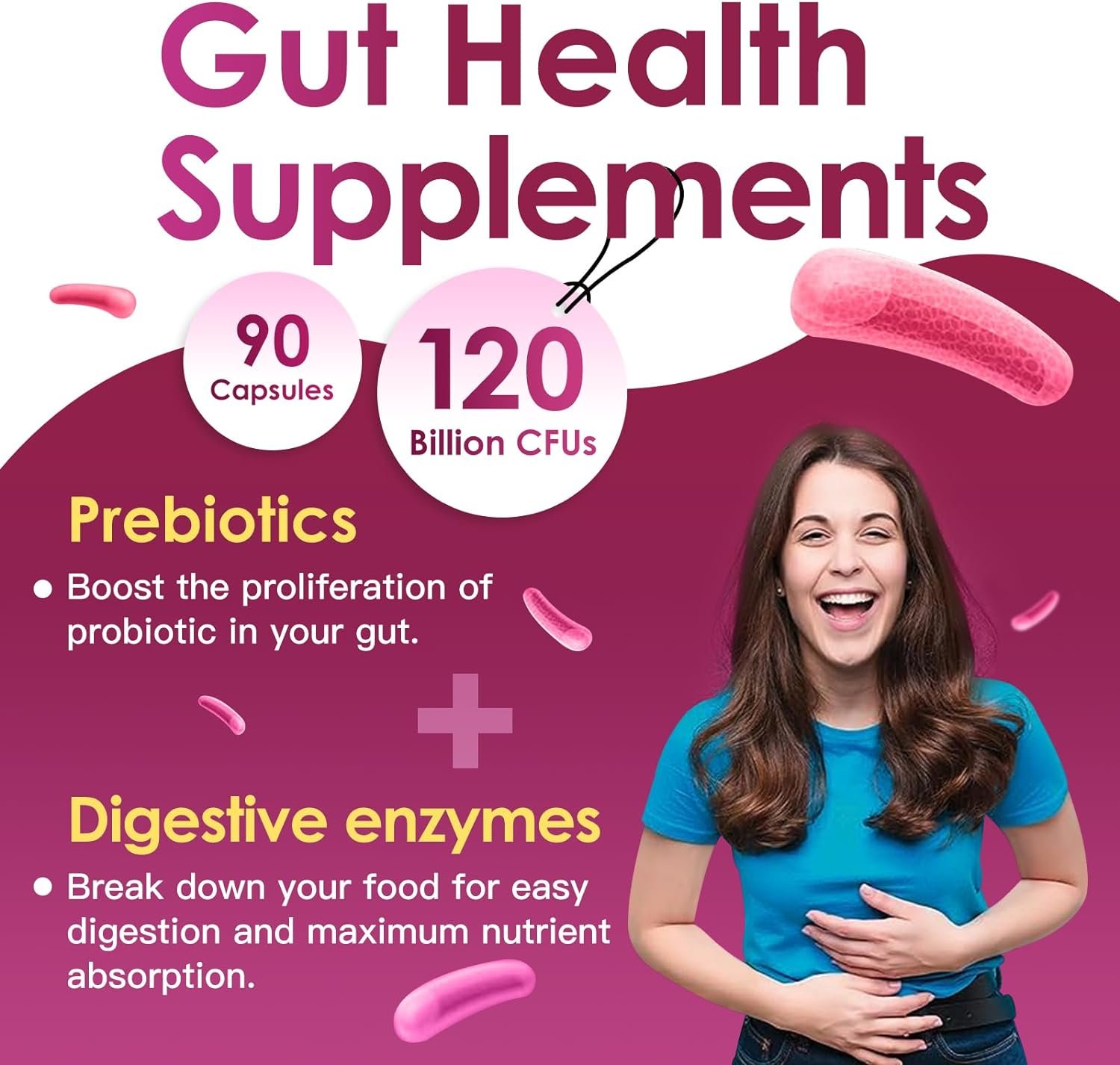 POWERFUL GUT HEALTH SUPPLEMENTS FOR WOMEN: Our Women’s Probiotics delivers a unique combination of 120 billion CFUs (Far Above Average), FOOD-BASED prebiotics, 9 plant-derived digestive enzymes, D-mannose & organic cranberry extract to boost digestive health, vaginigal health and immune system. Delay-release Technology ensures probiotics survive the stomach acids and 10 x more survivability deep into your intestine. * 90-Capsules for a 45-day supply, cost-effective!