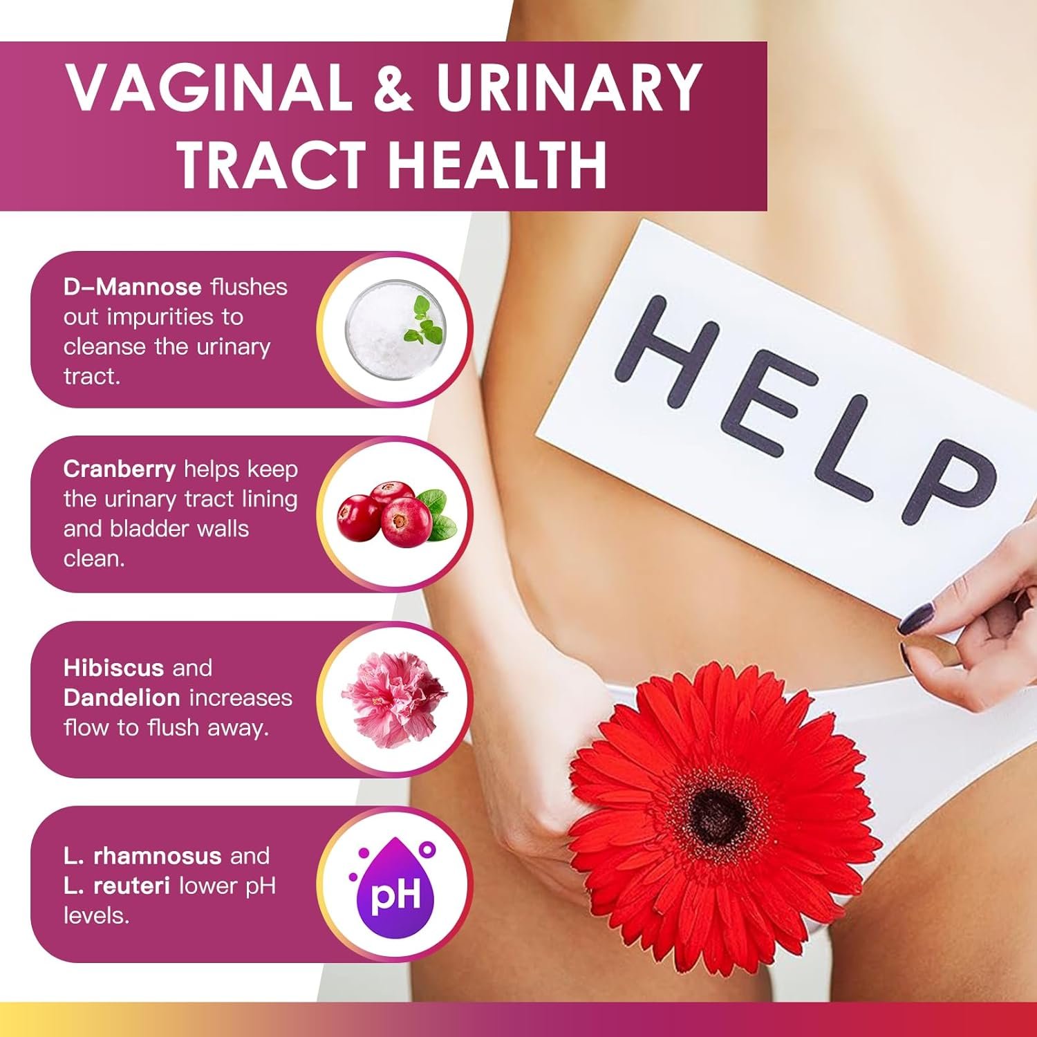 VAGINAL AND URINARY HEALTH: Unlike other probiotics brands, our vaginal probiotics extra added 4 powerful women ingredients- D-Mannose, Cranberry, Hibiscus Flower Extract and Dandelion Root Extract , the content of Women Health Complex is 540 mg/serving (Above average), all specially designed to tailor to women’s specific needs (i.e. Vaginal & UTI) and offer the HIGHEST POTENCY. L. reuteri and L.rhamnosus can keep the PH balanced. They are work together to support vaginal and urinary health.