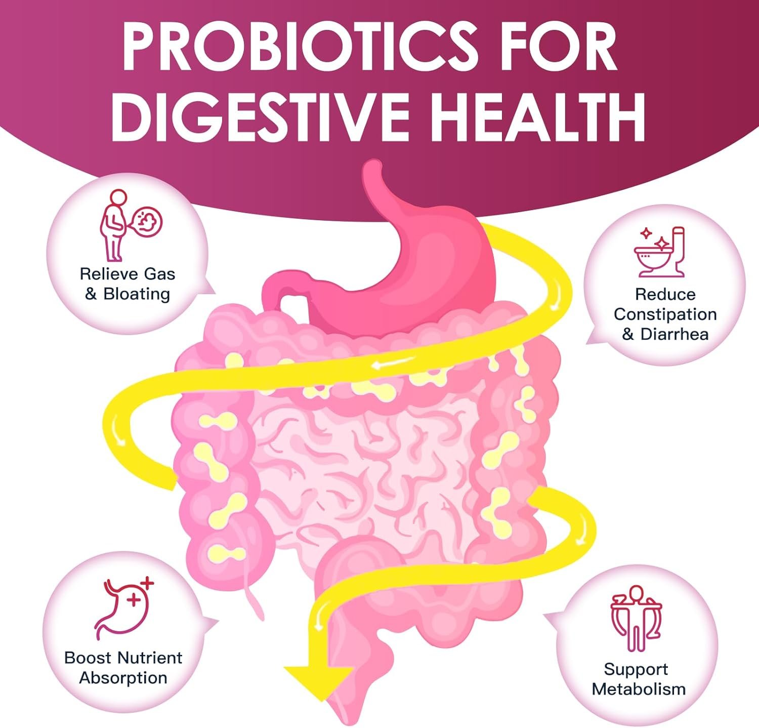 PROBIOTICS FOR DIGESTIVE HEALTH: We have added 31 strains, like acidophilus probiotic and B. coagulans and help with bloating/gas/Constipation/Diarrhea. Prebiotics feed Probiotics as they work to help your body maintain healthy digestion function. Digestive enzymes Break Down Food and Aid Digestion, Facilitate Better Nutrient Absorption. This expertly formulated complex pairs digestive enzymes with probiotics and prebiotics to make the ultimate solution for daily digestive health.