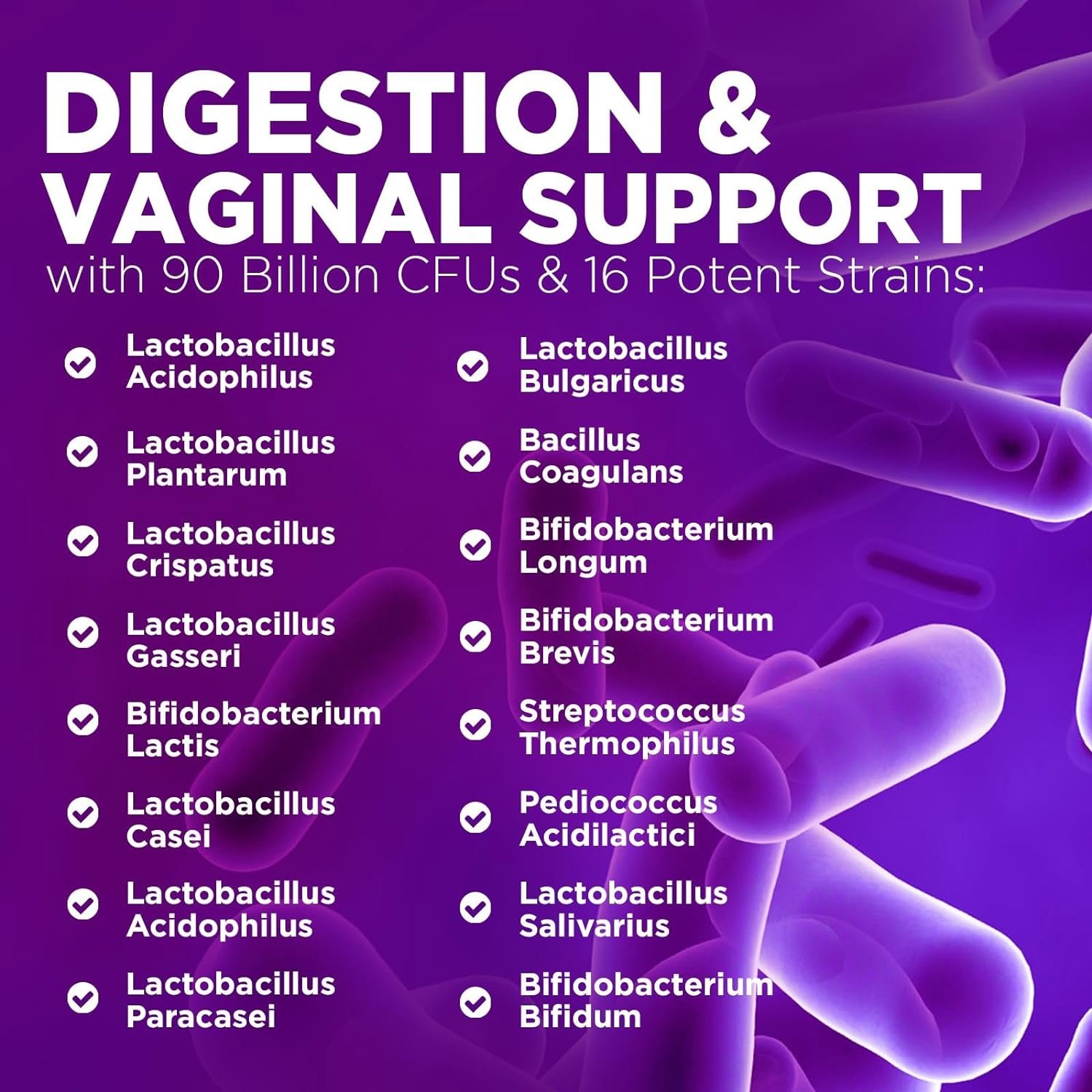 Effective Digestion Support Women Probiotic: Elevate digestive health support with our Probiotics for Women Capsules featuring a potent blend of 16 diverse strains and 90 billion CFU
