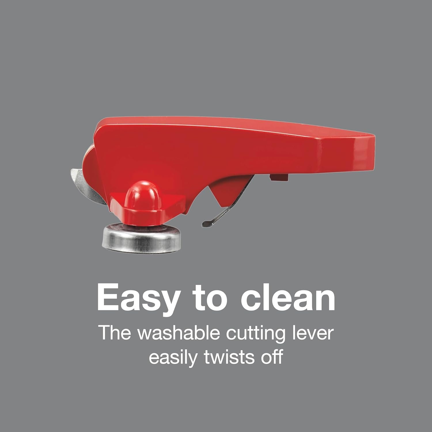 EASY TO CLEAN: The washable cutting lever on the electric can opener easily twists off to make cleaning the can opener easy.